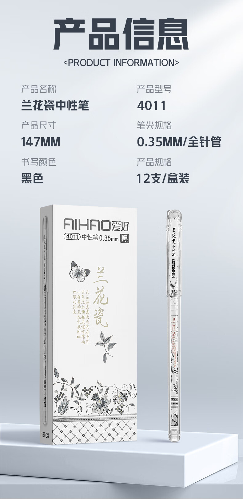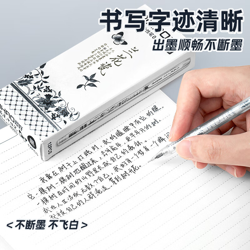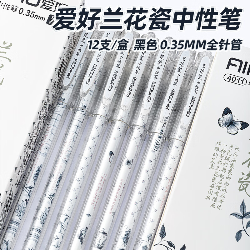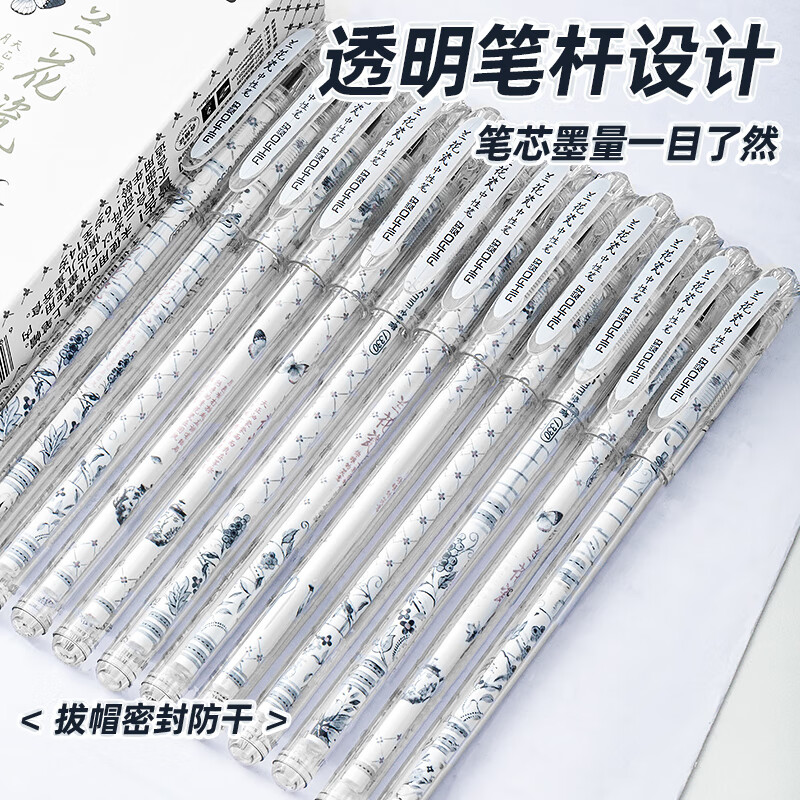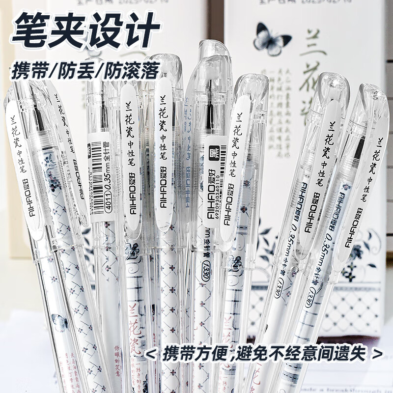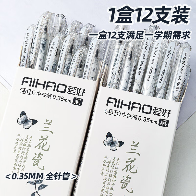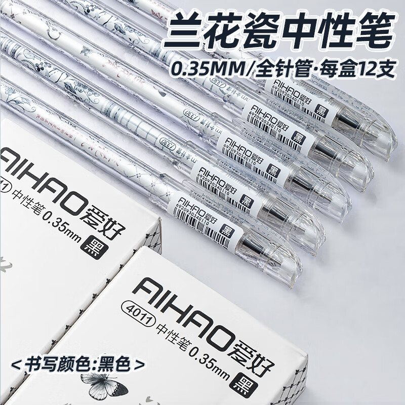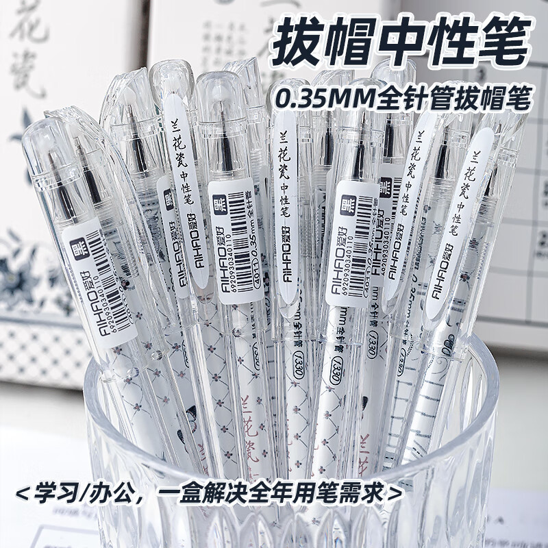 爱好(AIHAO)兰花瓷拔帽中性笔0.35签字笔办公用黑色学生全针管刷题笔黑色水笔12支 4011