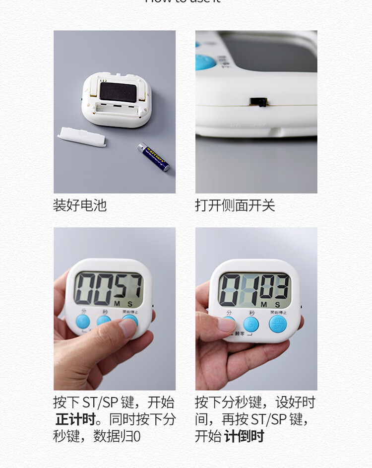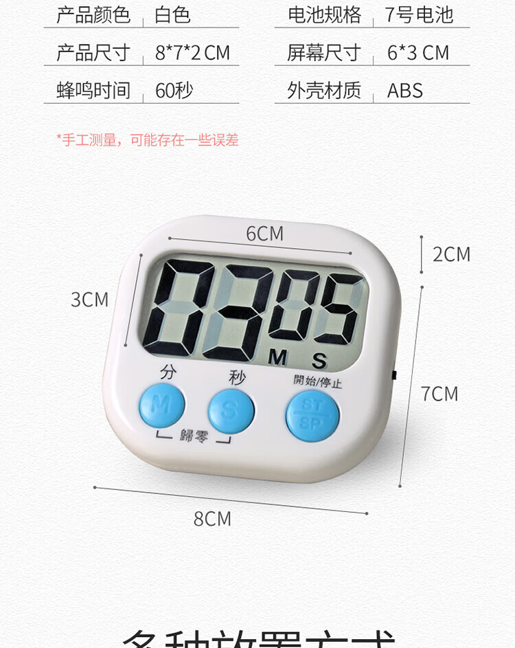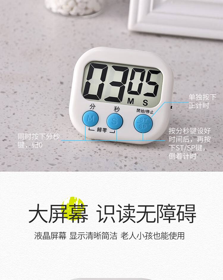 计时器做题厨房提醒器学生学习考研电子钟时间管理自律定时器烹饪 计时器【颜色随机】一个