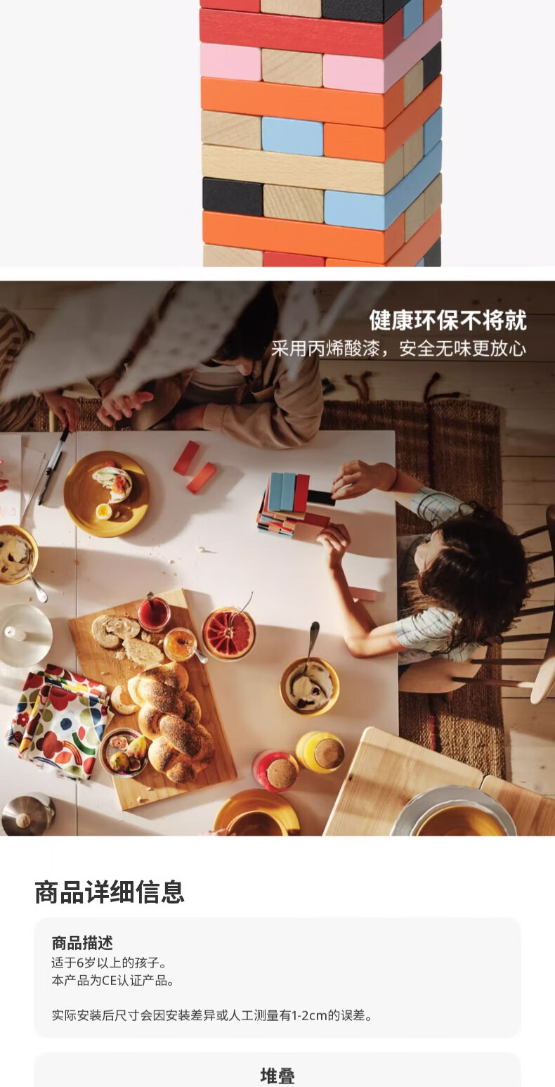 宜家(IKEA)FJALLVRAK菲尔洛克抽积木叠叠块儿童益智玩具 堆叠54件