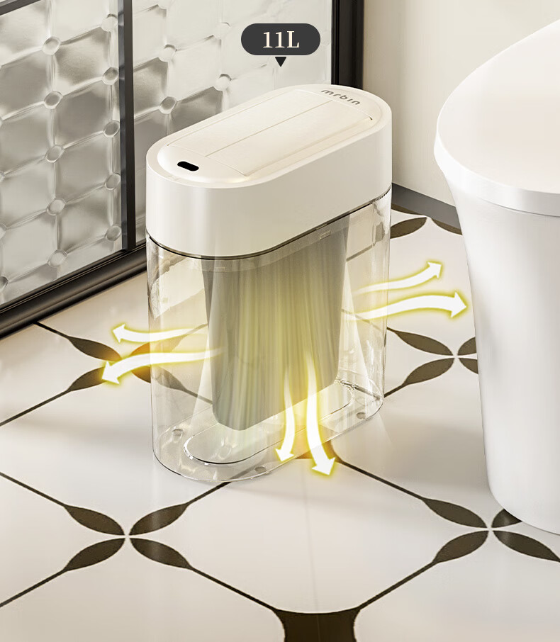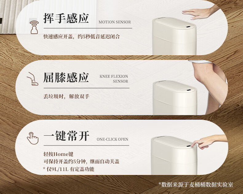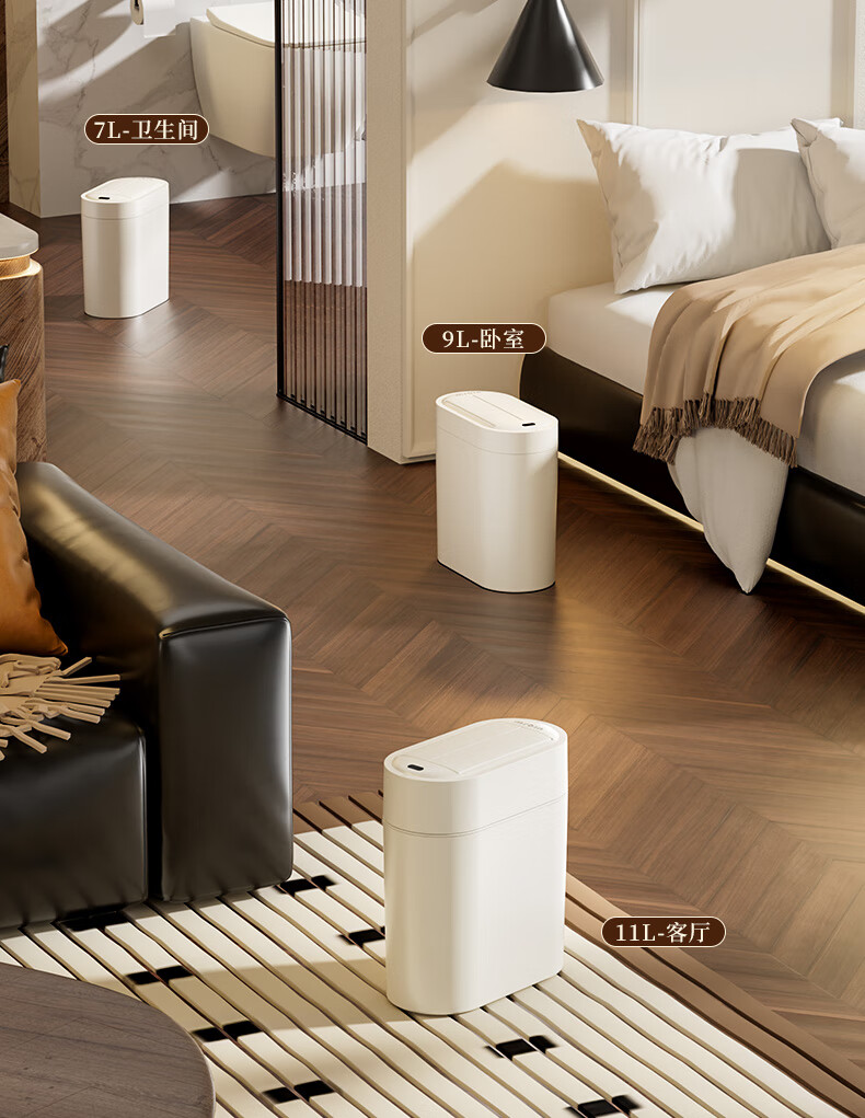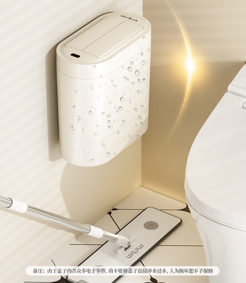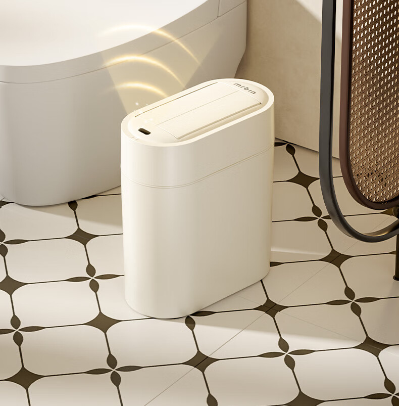 麦桶桶(Mr.Bin)卫生间智能感应垃圾桶窄夹缝卧室自动吸附厕所壁挂电动客厅特惠 【标准感应款】 奶油白 7L -赠壁挂贴