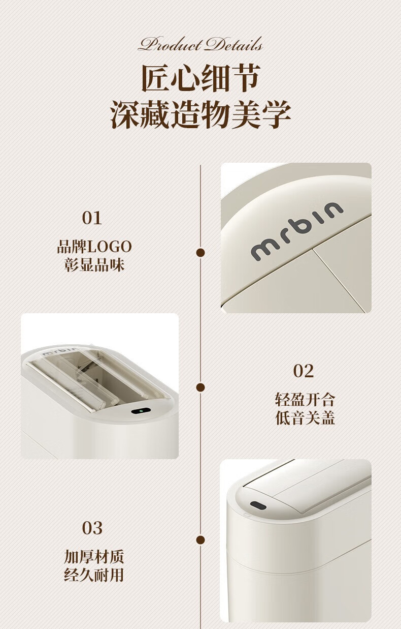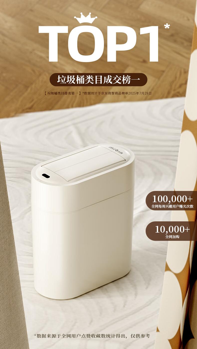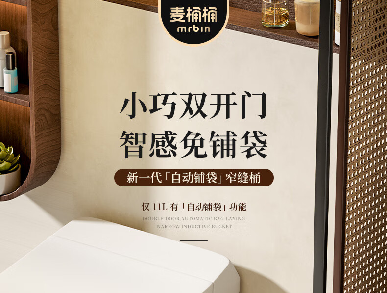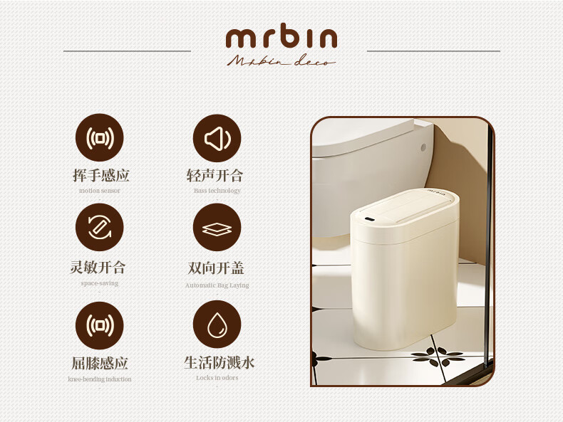 麦桶桶(Mr.Bin)卫生间智能感应垃圾桶窄夹缝卧室自动吸附厕所壁挂电动客厅特惠 【标准感应款】 奶油白 7L -赠壁挂贴