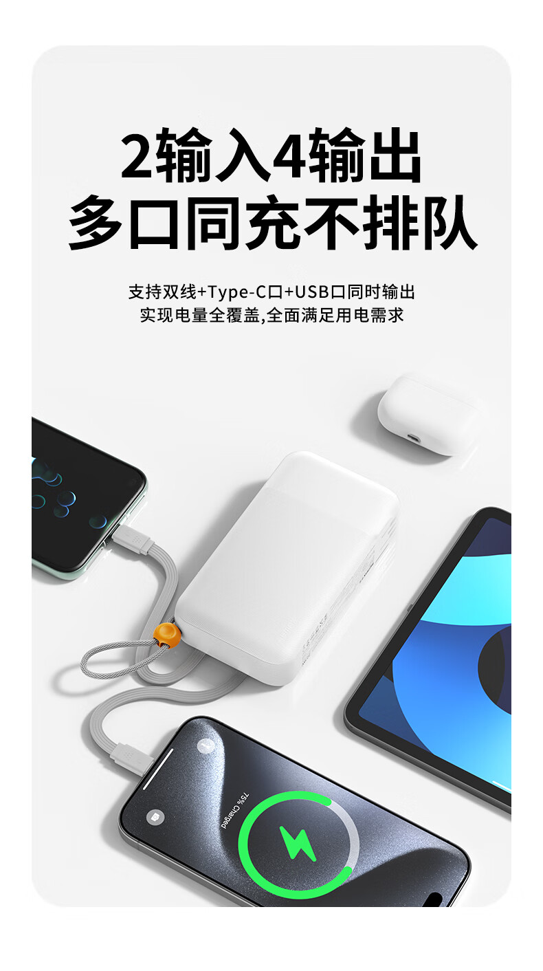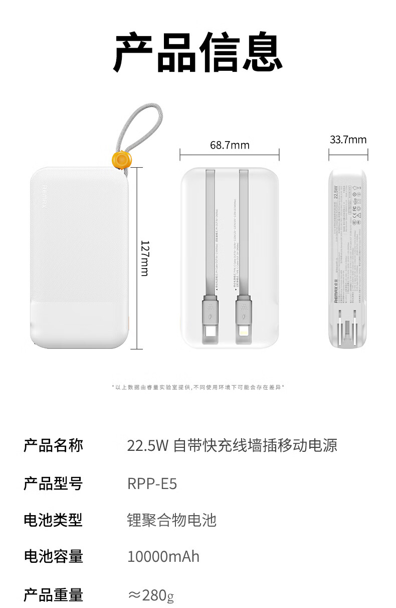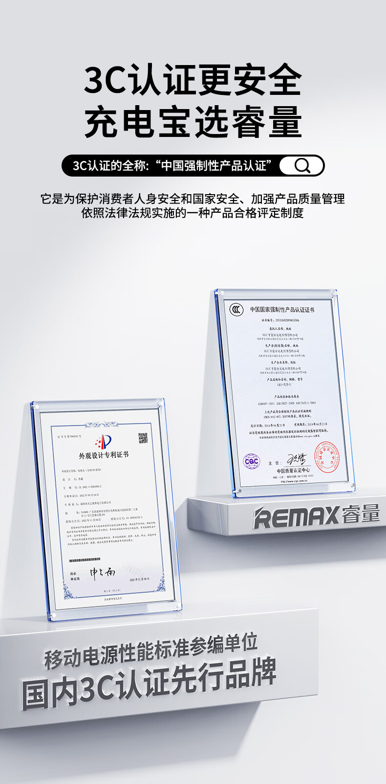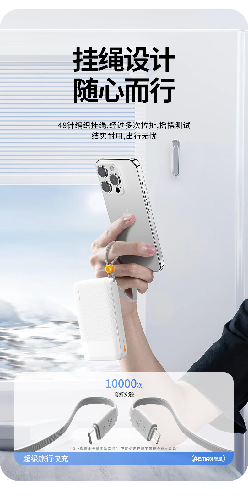 remax睿量3C认证20000mAh自带双线插头充电宝快充三合一便携22.5W移动电源适用苹果17华为小米可上飞机