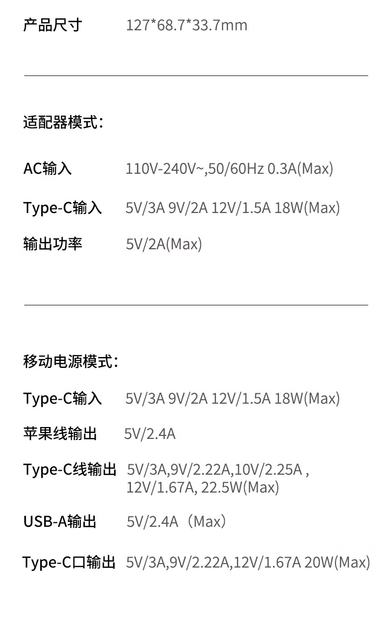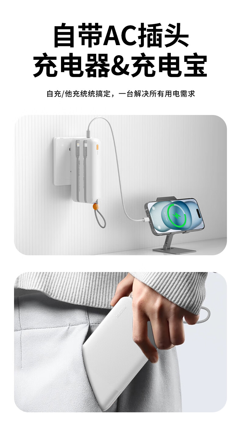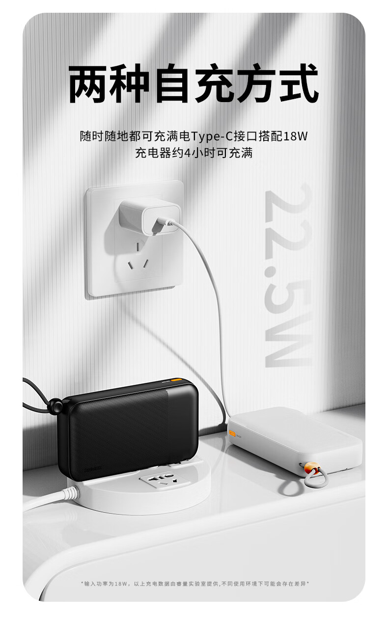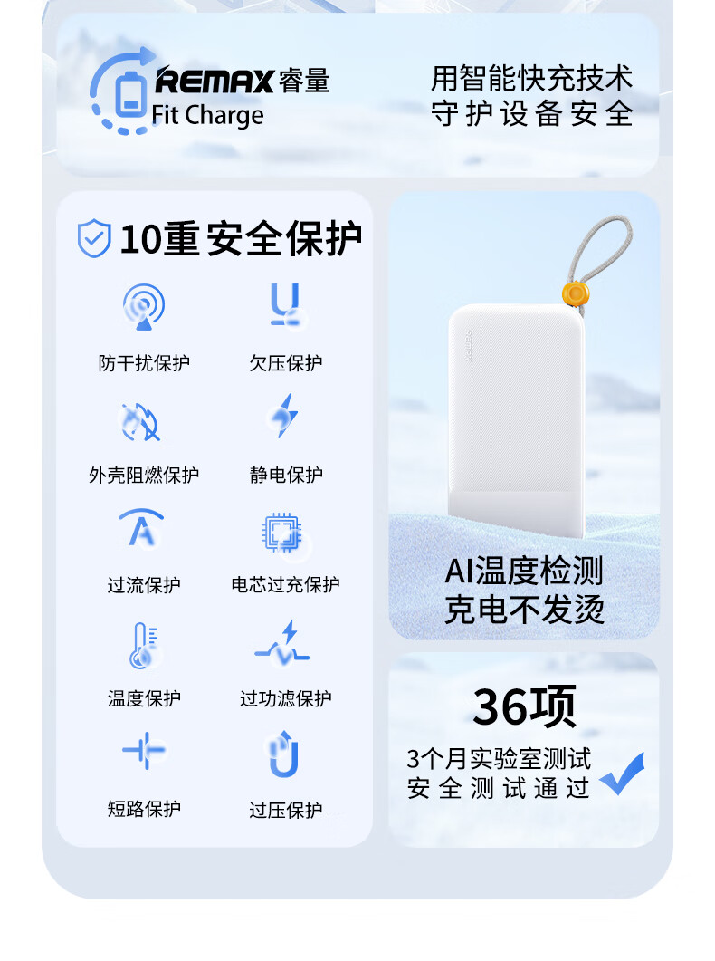 remax睿量3C认证20000mAh自带双线插头充电宝快充三合一便携22.5W移动电源适用苹果17华为小米可上飞机