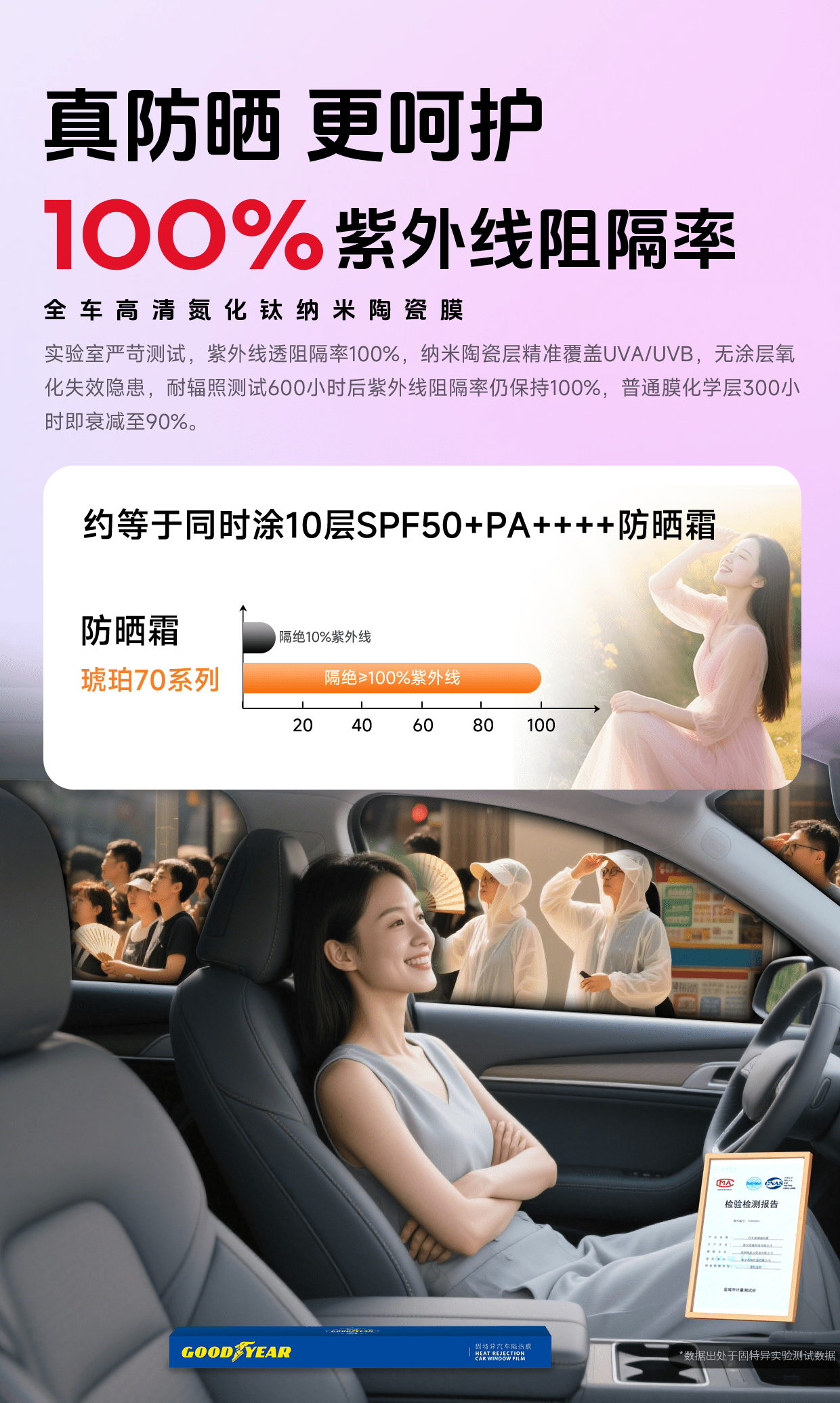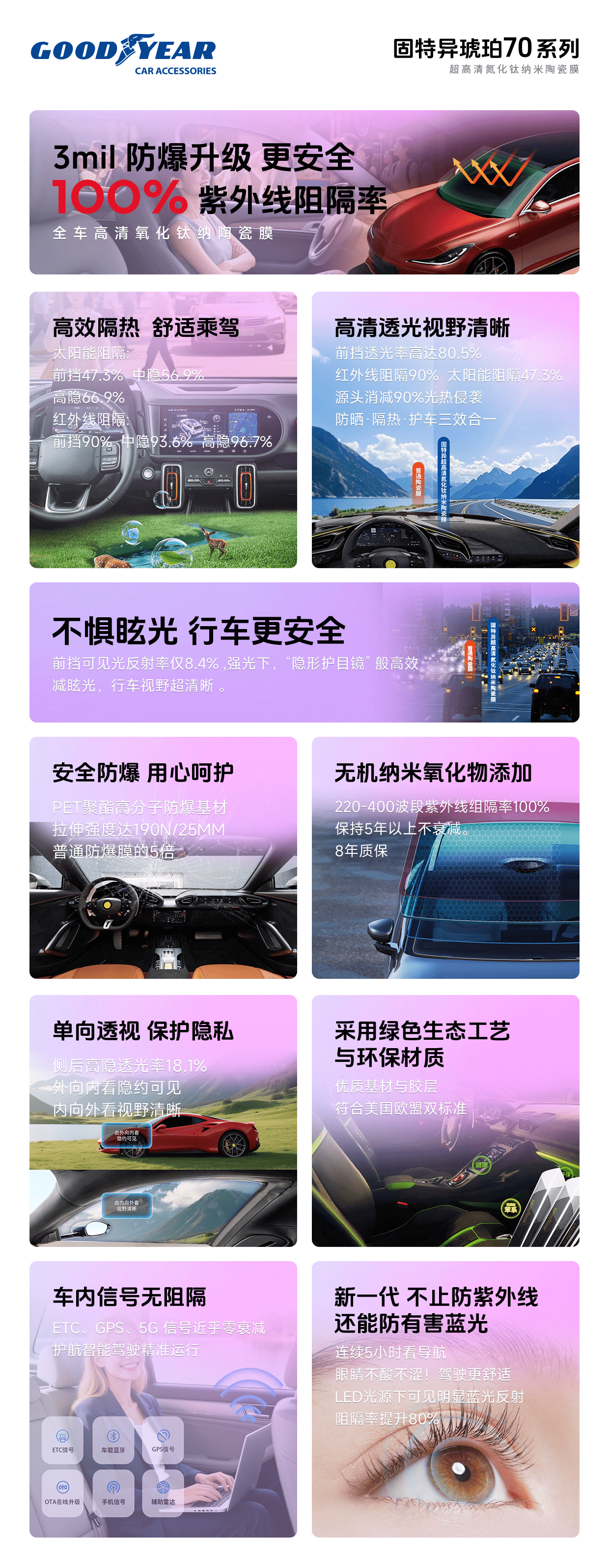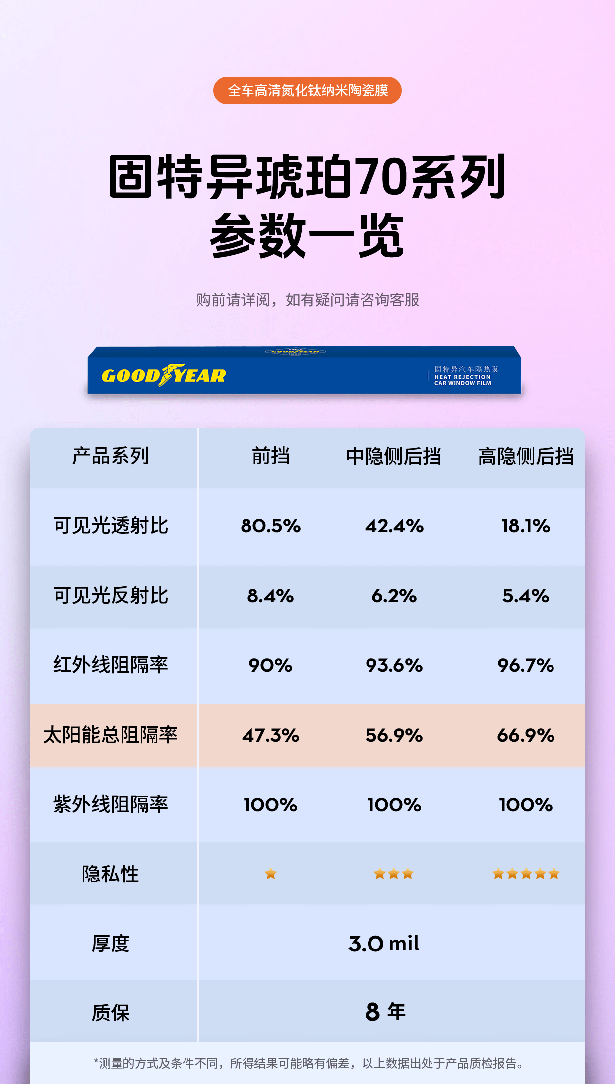 固特异(Goodyear)汽车贴膜 琥珀70系列汽车玻璃膜汽车膜全车膜防晒隔热车窗膜贴膜全车膜
