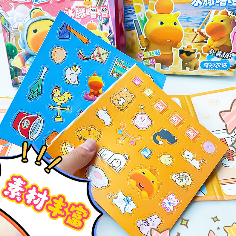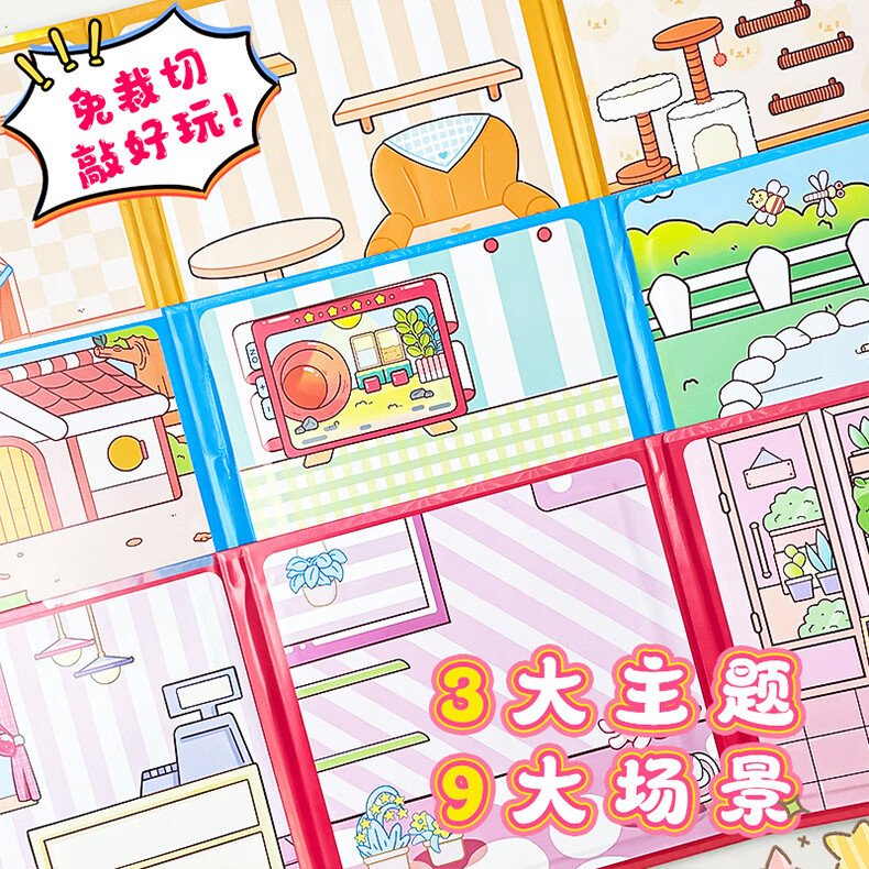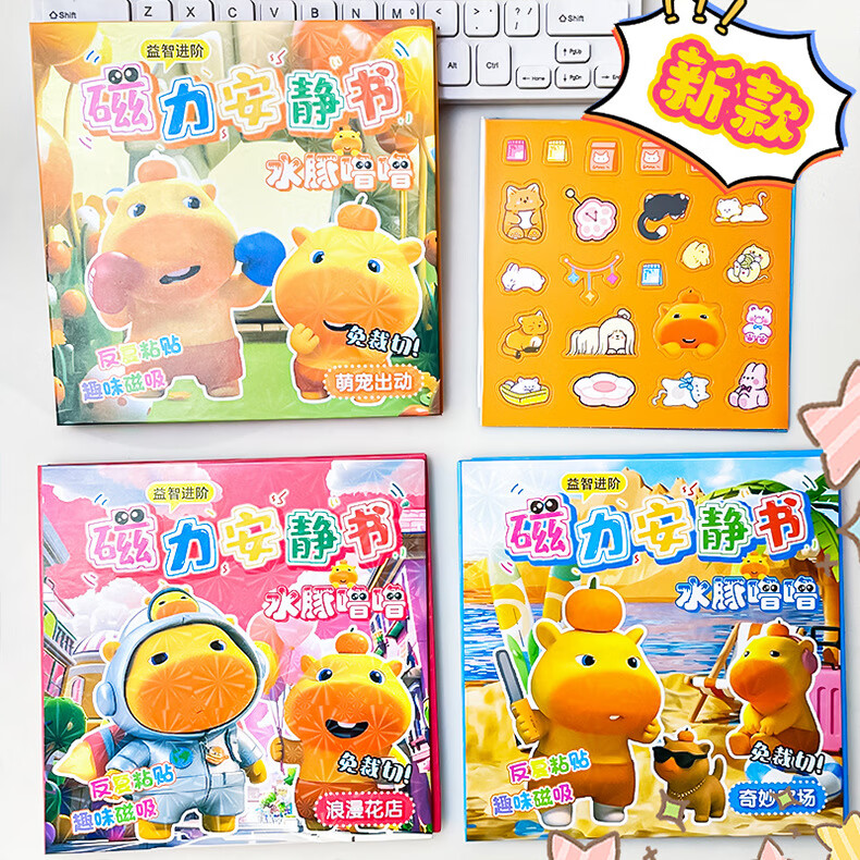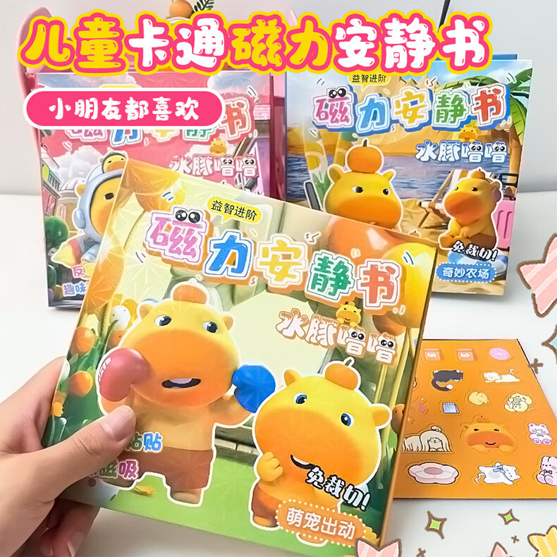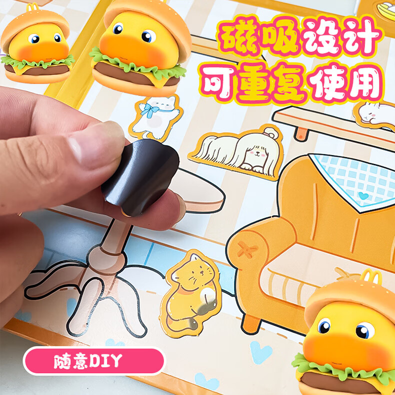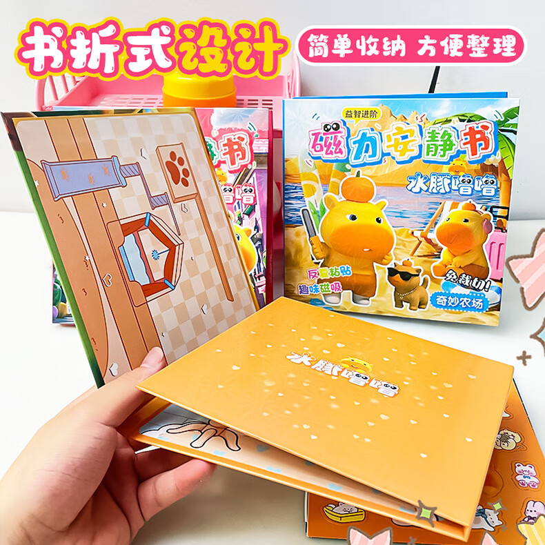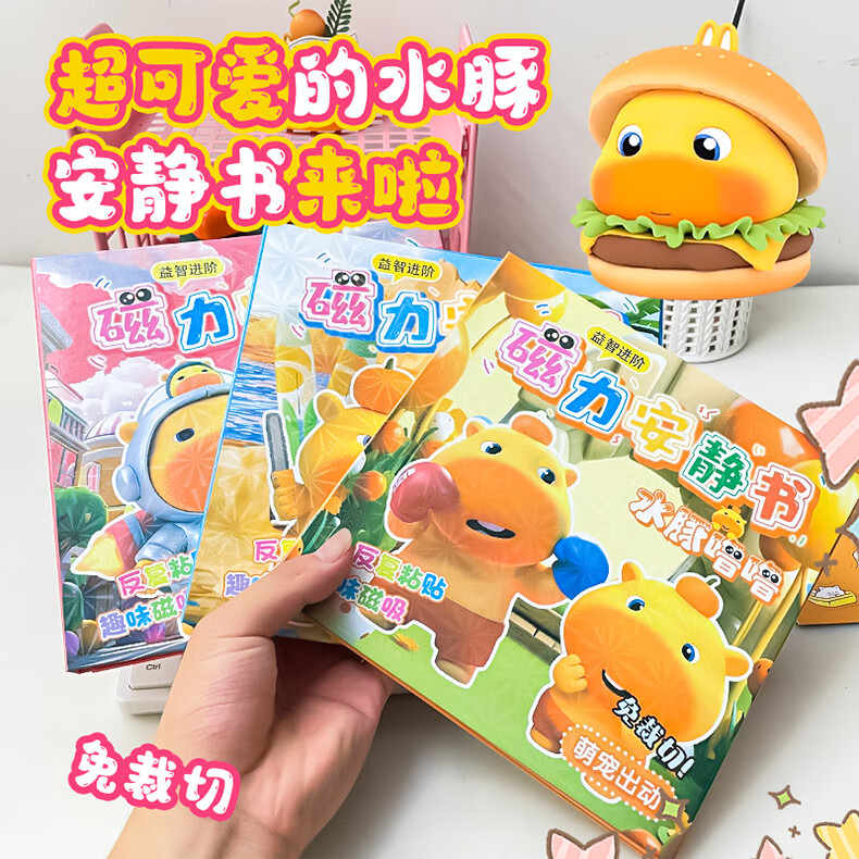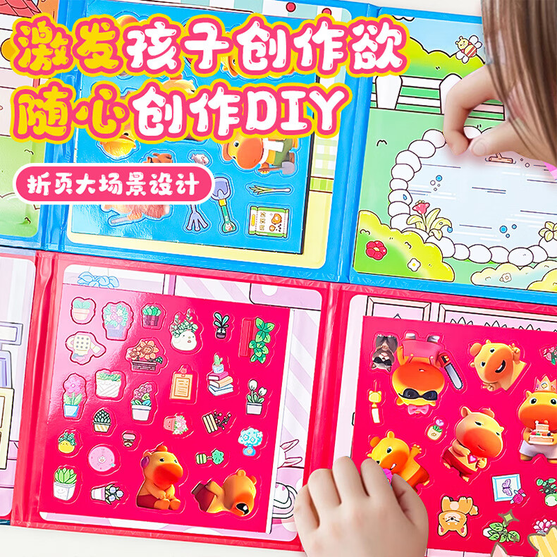 MPPMCK卡皮巴拉磁吸安静书儿童DIY磁力玩具水豚换装手工免裁剪粘贴 3# 浪漫花店(红)