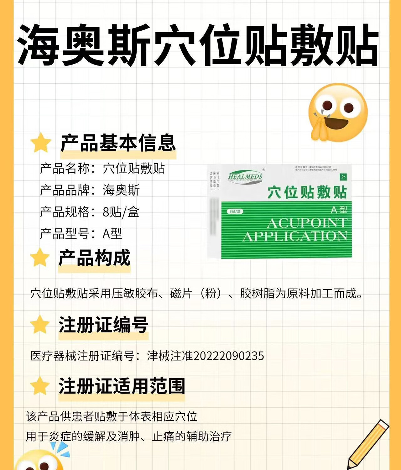 海奥斯天津海奥斯穴位贴敷贴A型8贴/盒HEALMEDS正品 【5盒/40贴】
