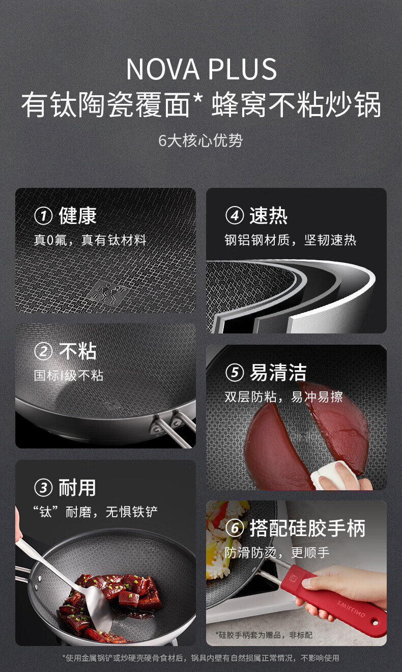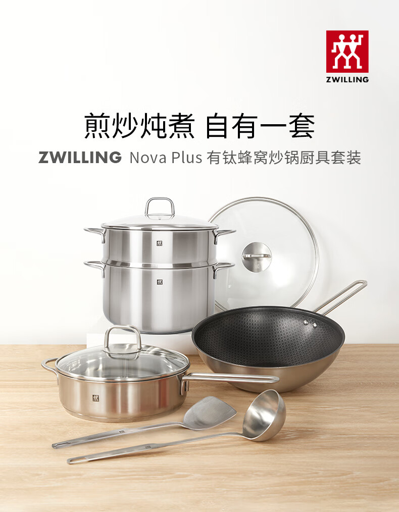 双立人(ZWILLING)锅具套装有钛蜂窝炒锅不锈钢平底锅煎锅汤锅锅铲汤勺乔迁厨具 【有钛蜂窝炒锅】厨具套装 6件套