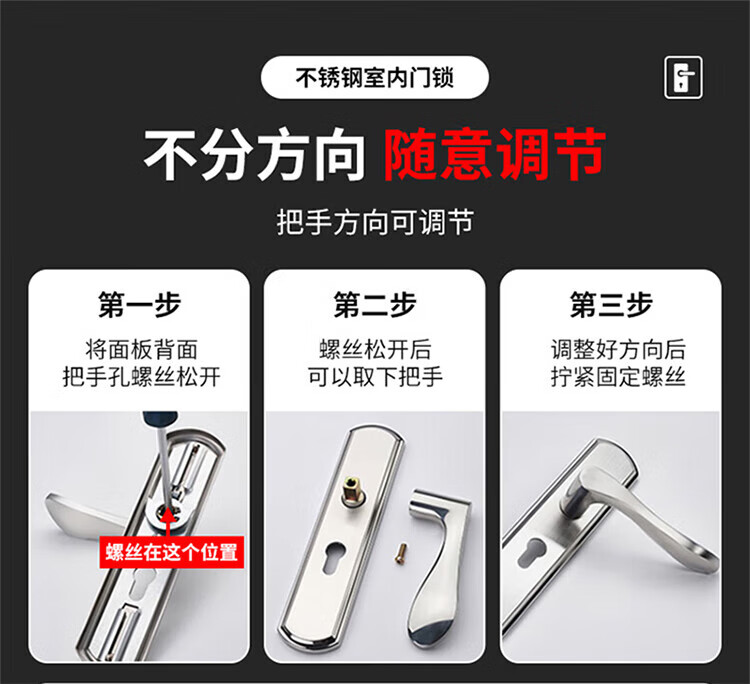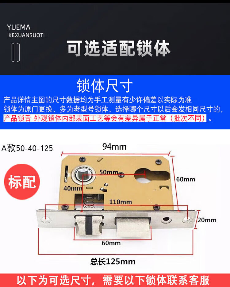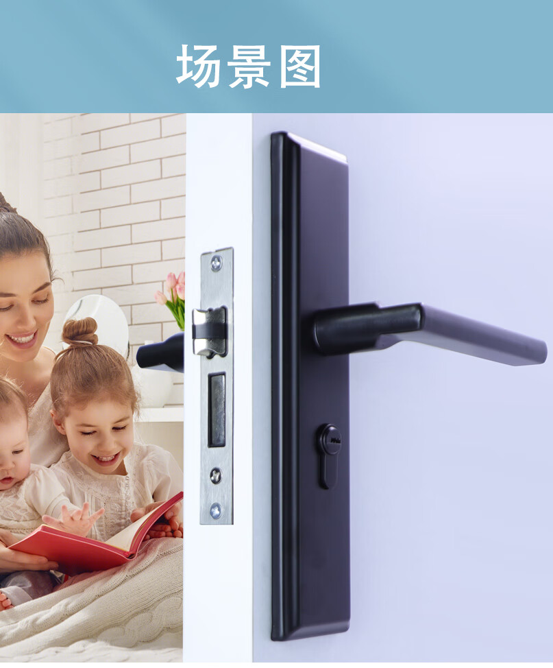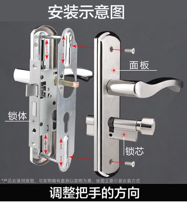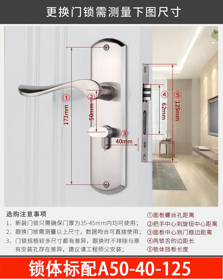 玥玛卧室门锁木门锁通用房间室内门锁免改孔安装通用整套房门锁把手 免开孔125锁体全套银色