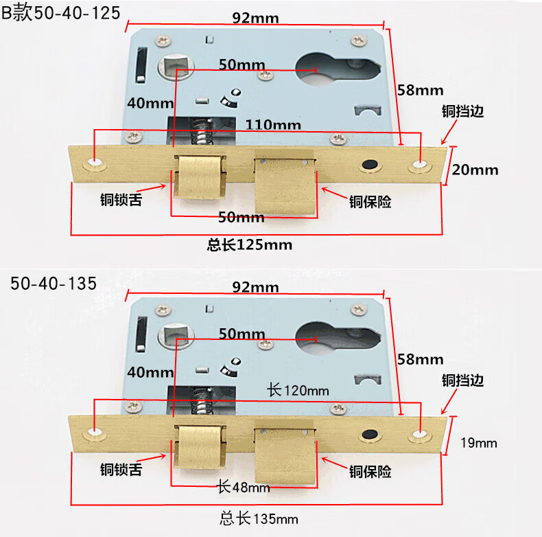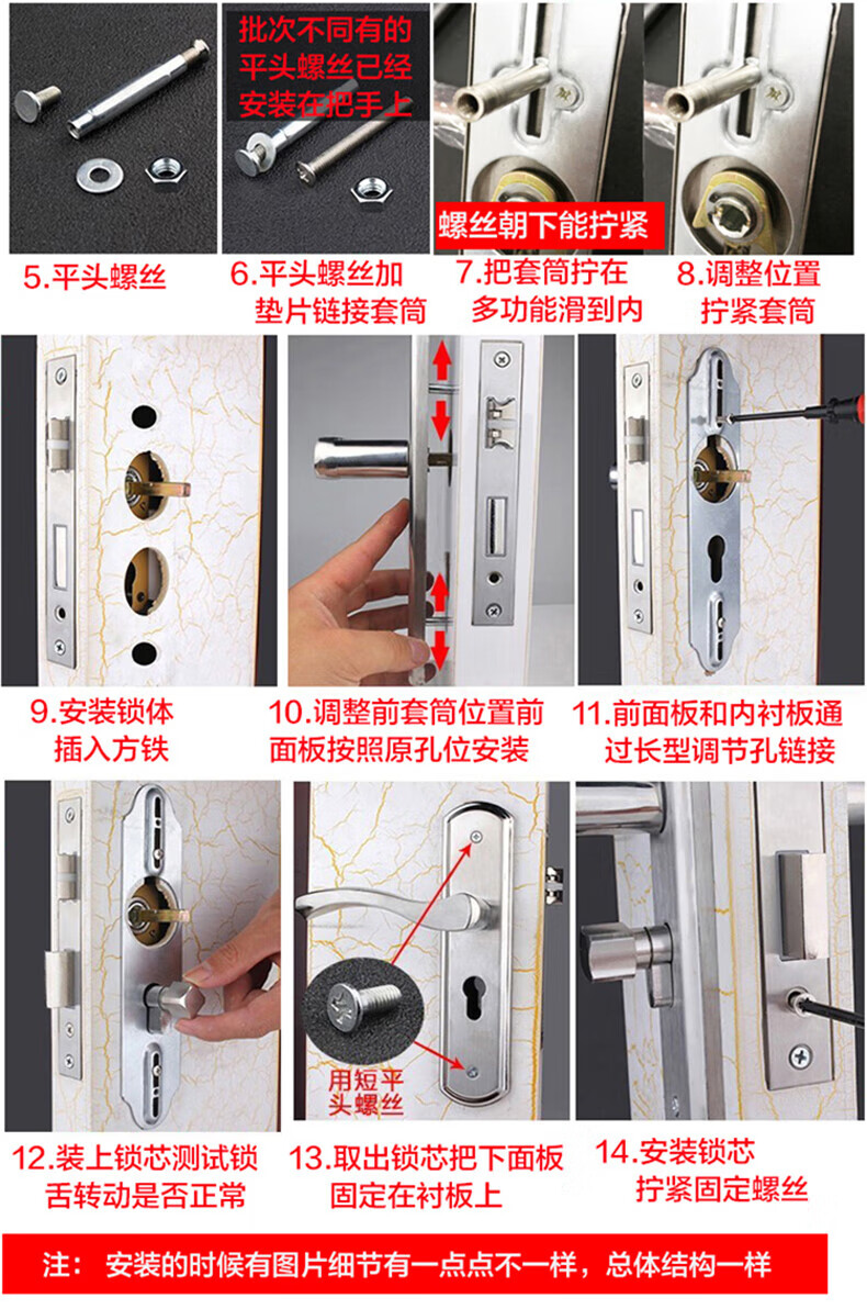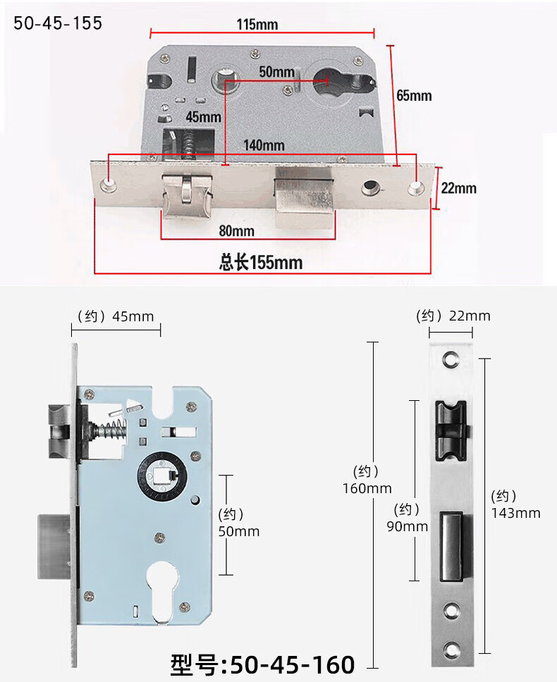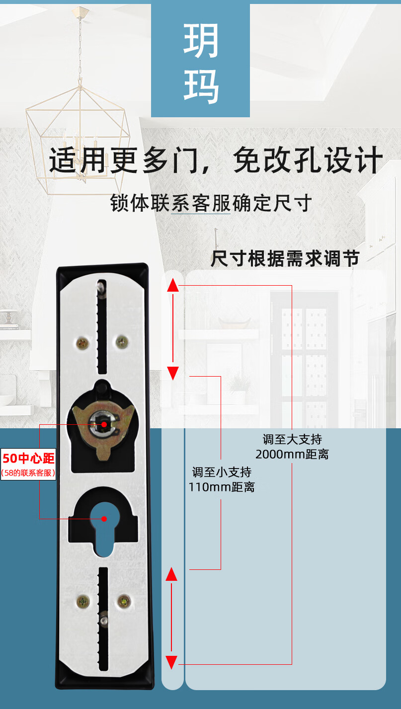 玥玛卧室门锁木门锁通用房间室内门锁免改孔安装通用整套房门锁把手 免开孔125锁体全套银色