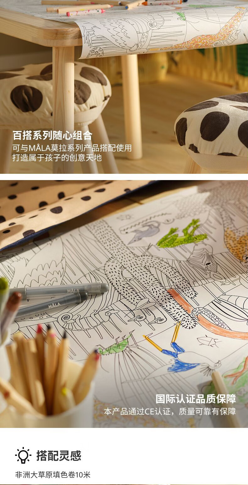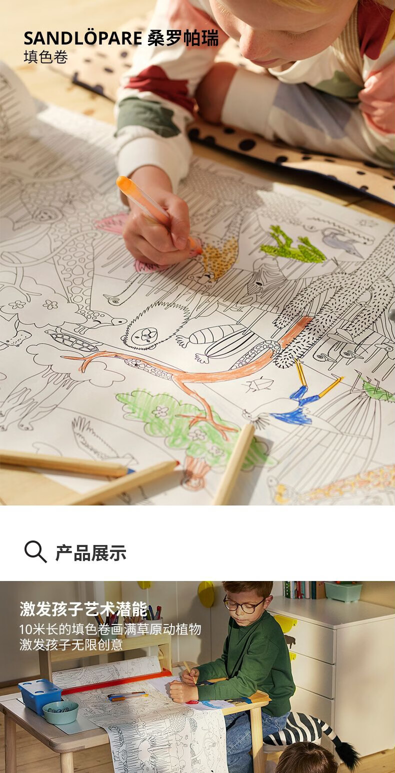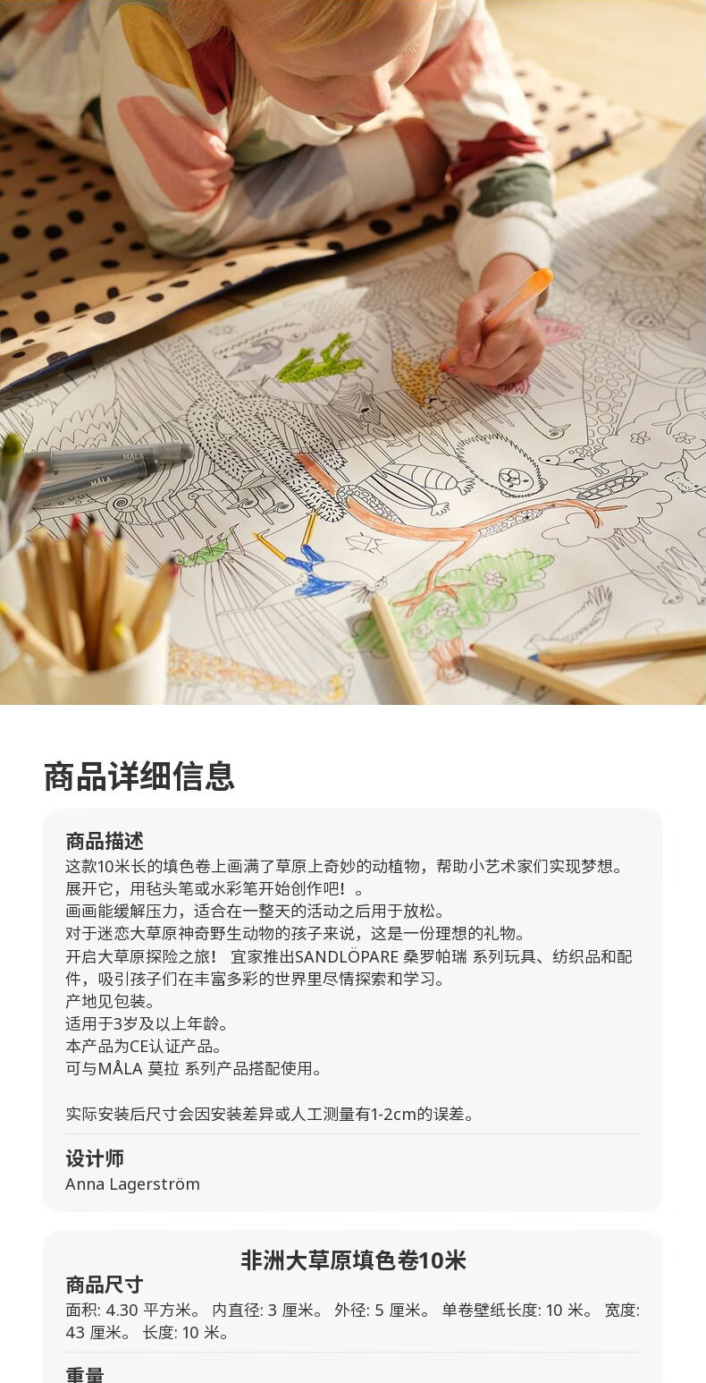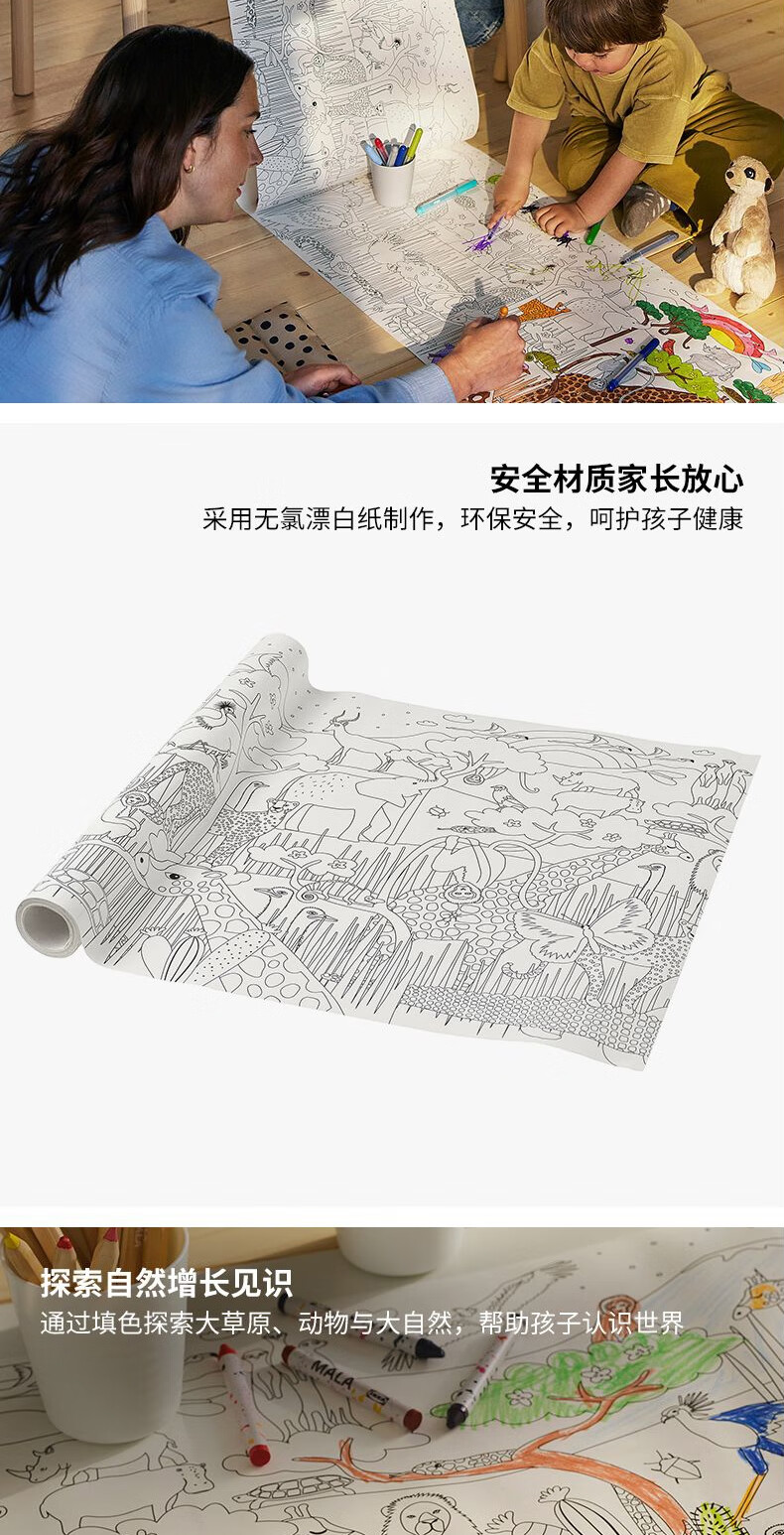 宜家(IKEA)【新品】SANDLOPARE桑罗帕瑞填色卷画画绘图儿童益智玩具 非洲大草原填色卷10m