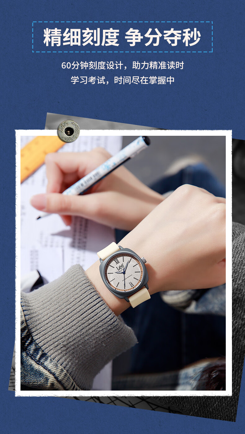 Lee学生手表青少年初高中生专用考试表石英表男女生日礼物F528 白色