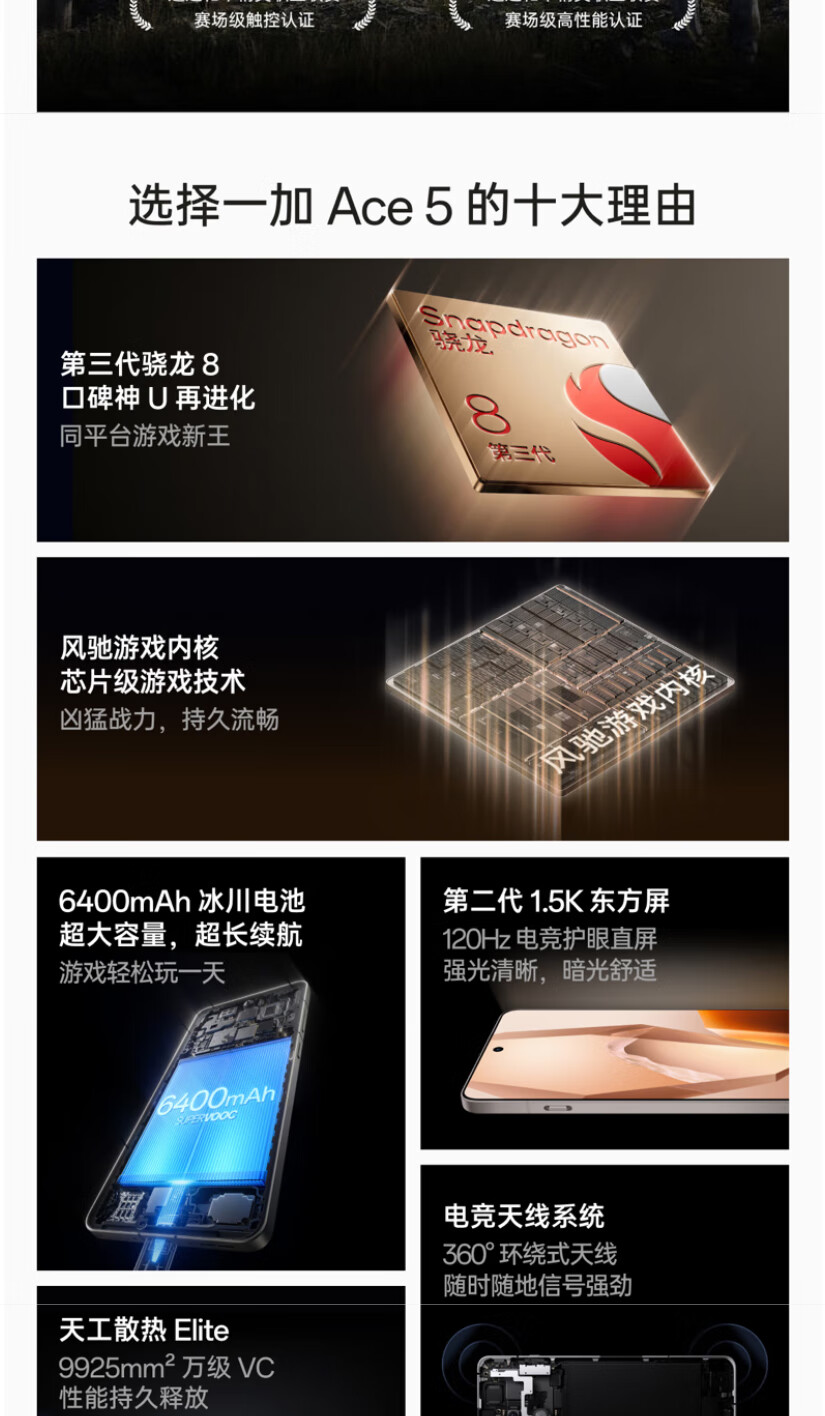 OPPO一加Ace5 pro 选购 骁龙8至尊版 风驰游戏内核 天宫散热 6400mAh冰川电池 oppo游戏AI智能5G手机 全速黑 【12GB+256GB】 官方标配【180天只换不修+三年质保+碎屏险】