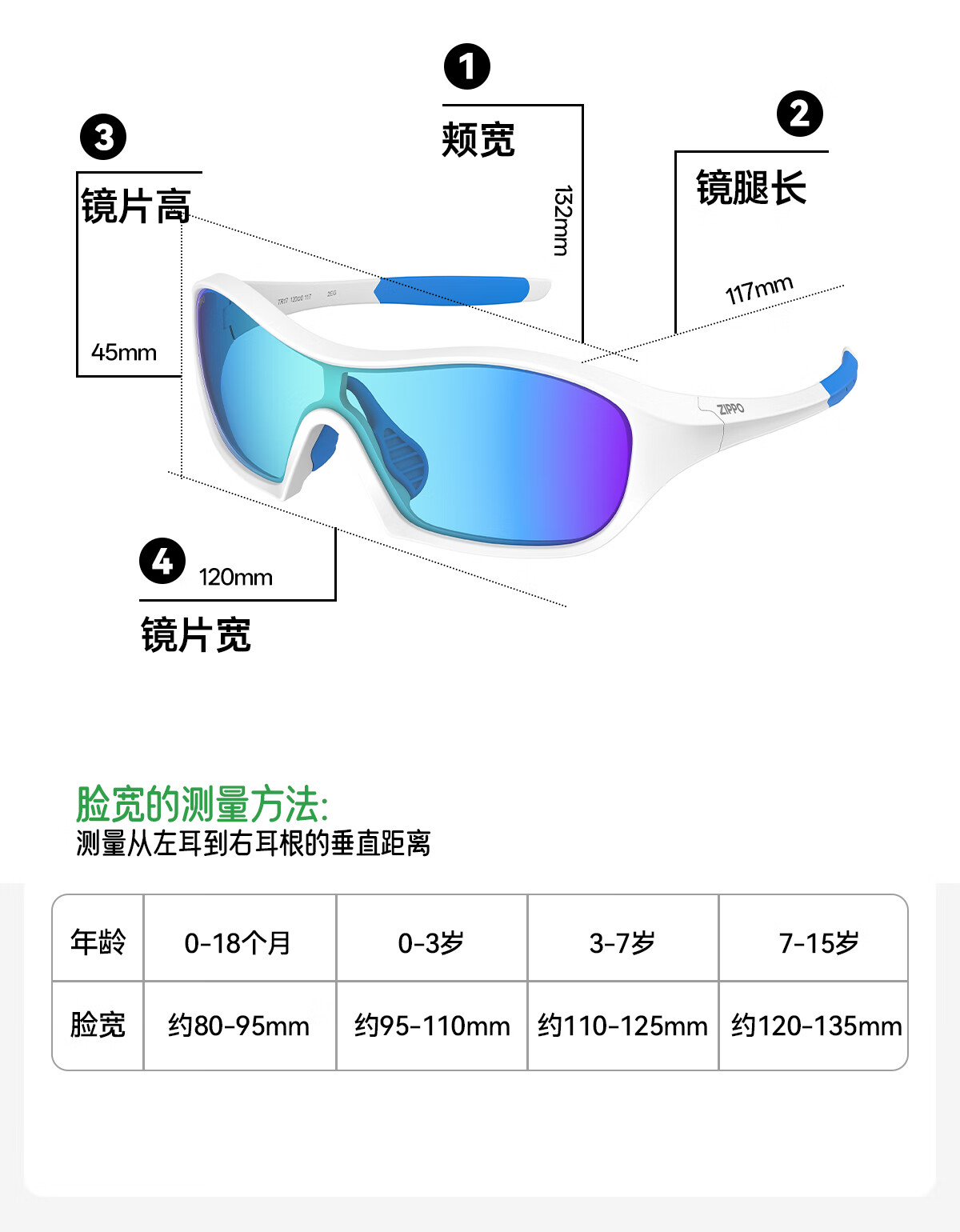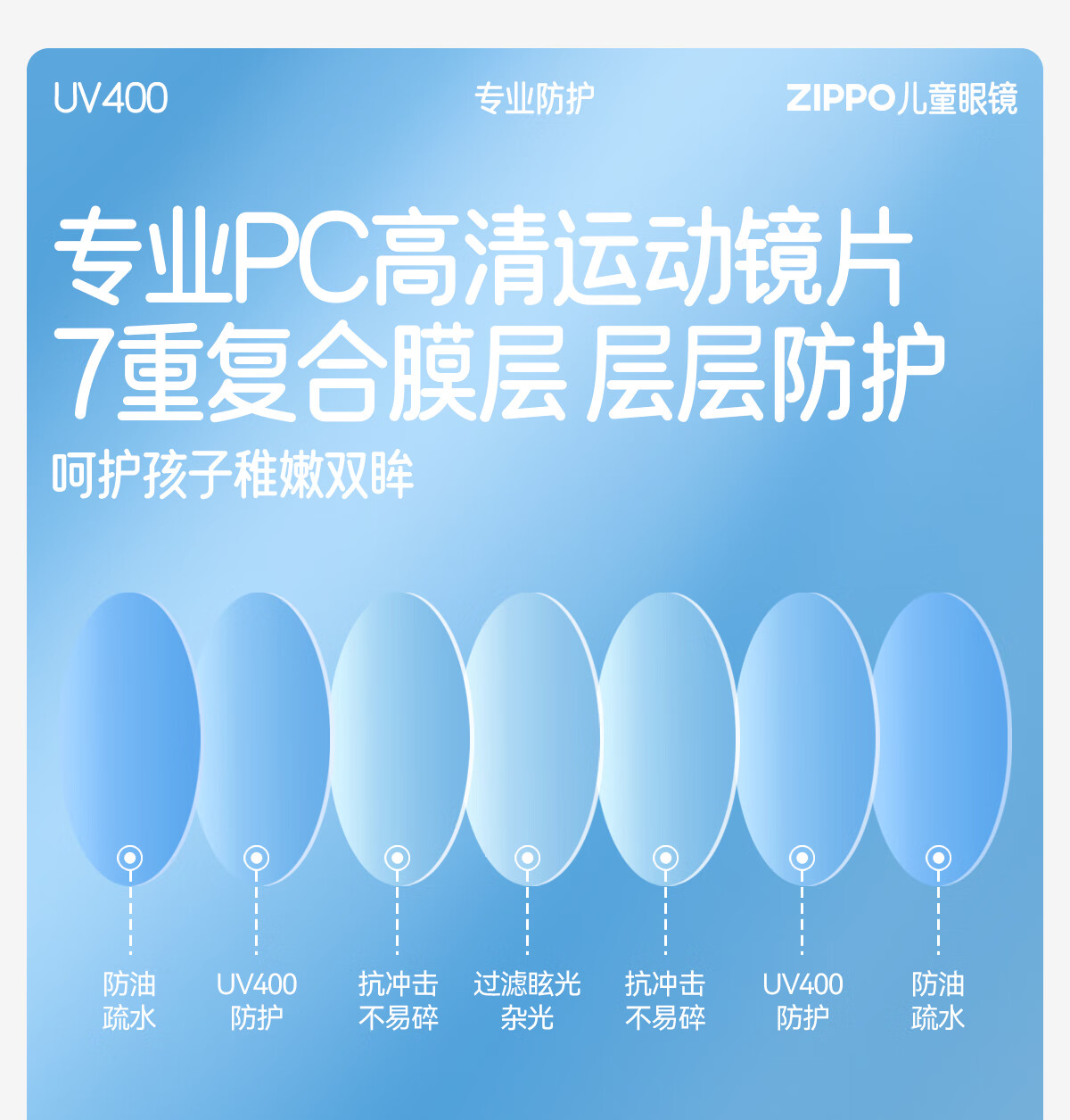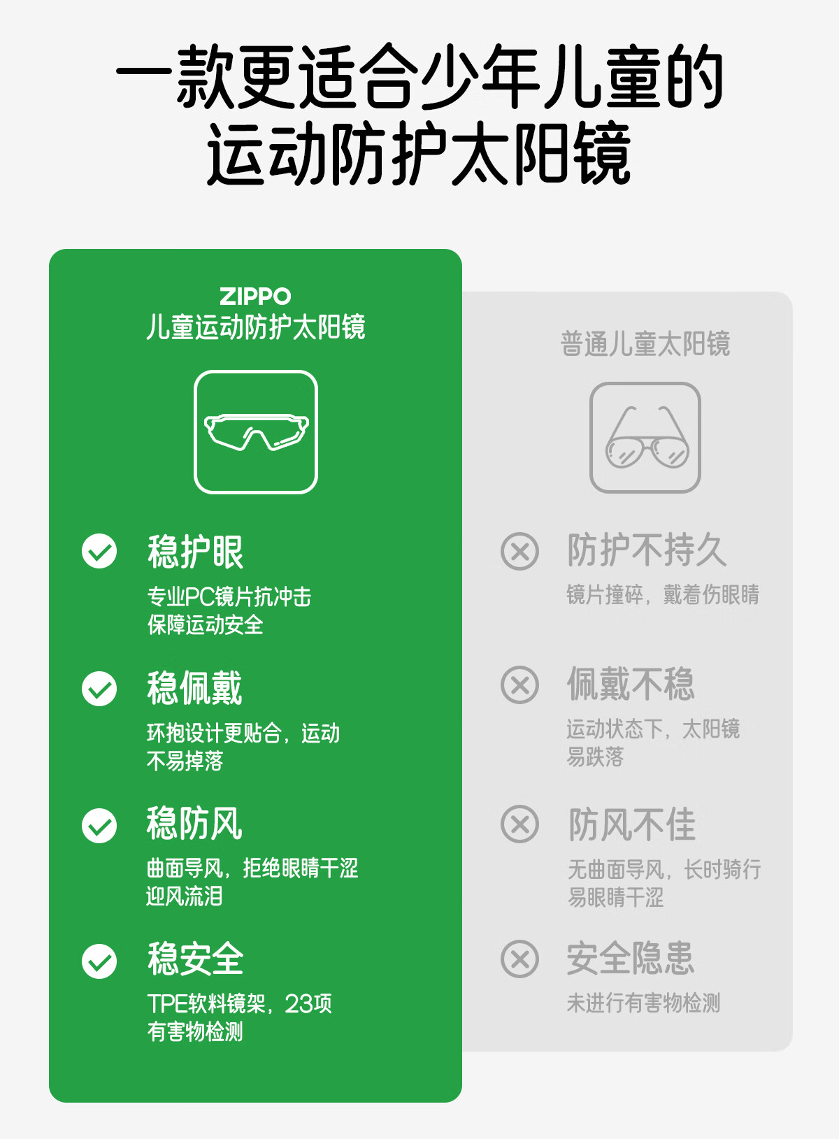 ZIPPO美国儿童墨镜护目户外登山滑板男女童防紫外线53320C2-11