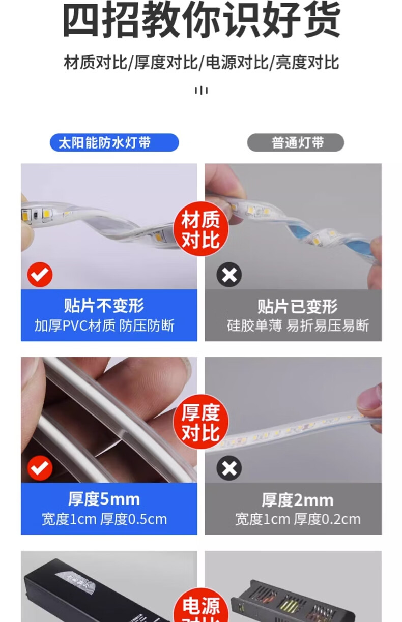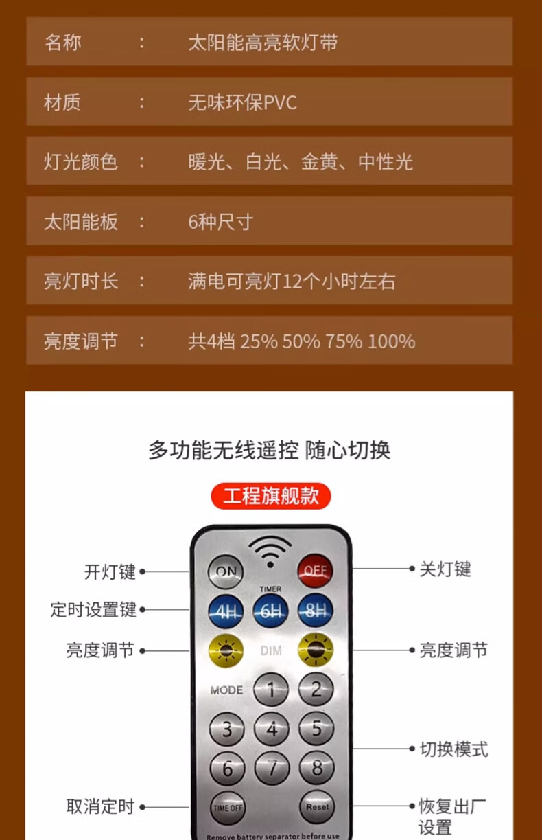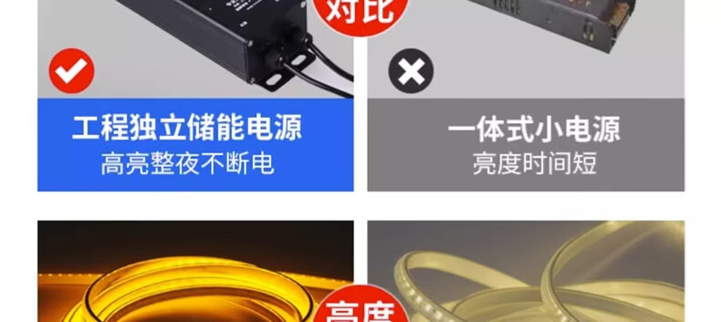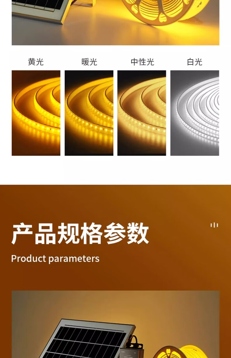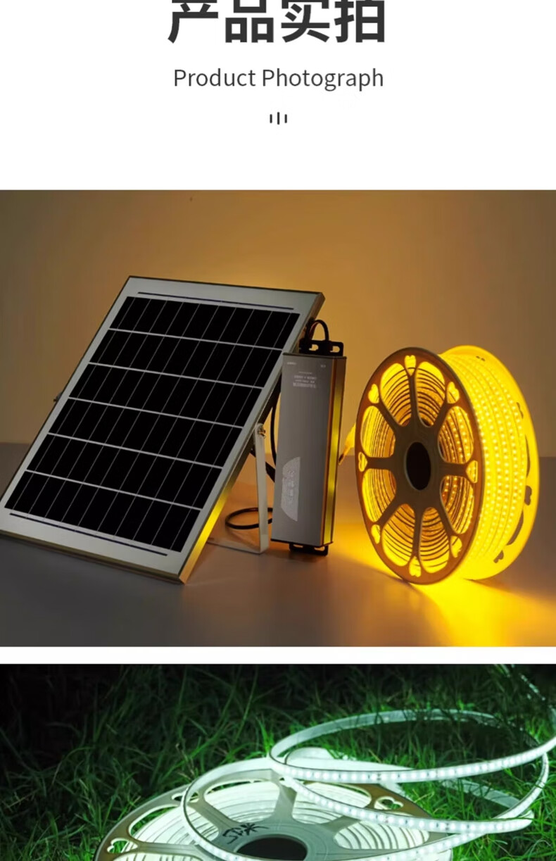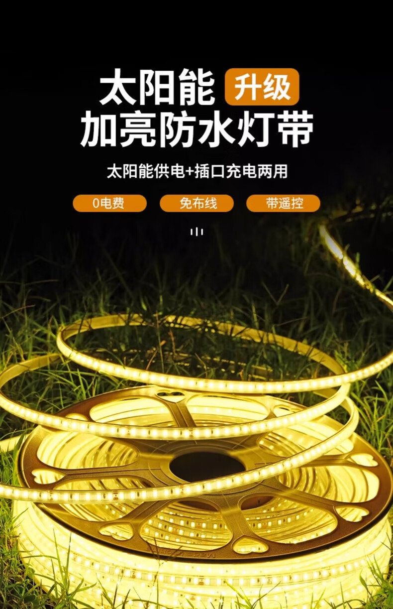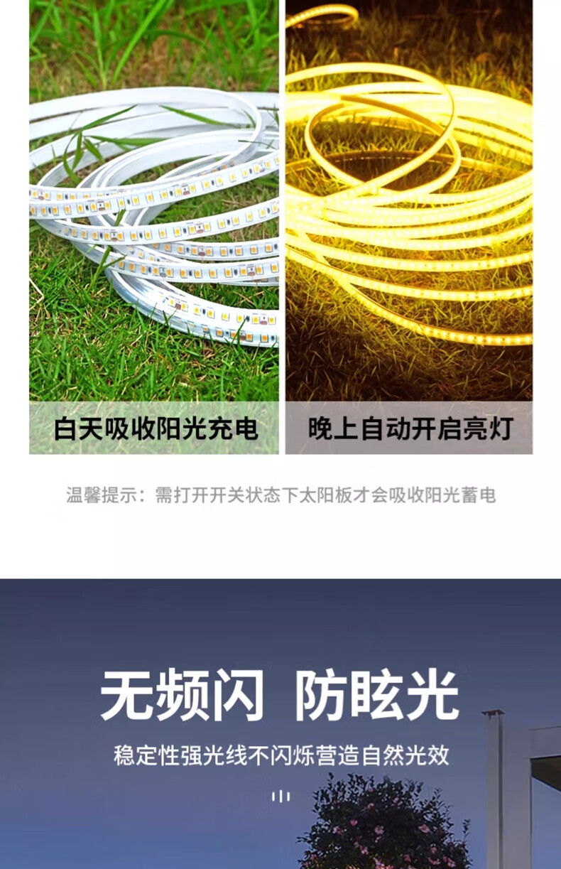 拉伯塔led太阳能灯带户外防水超亮工程照明亮化氛围灯条别墅庭院造景 【工程款】5米-300珠 金黄光
