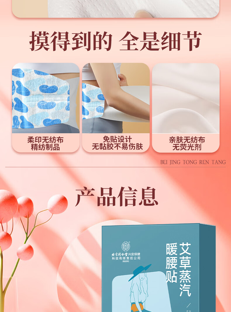 内廷上用北京同仁堂艾草蒸汽暖腰贴生姜腰部热敷贴腰椎生姜艾灸保暖贴 体验装【1盒装-共3贴】