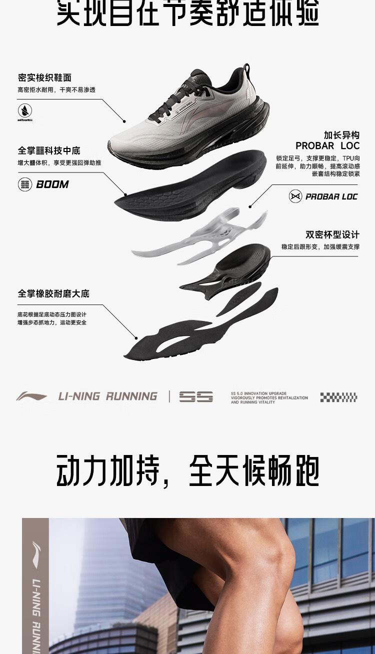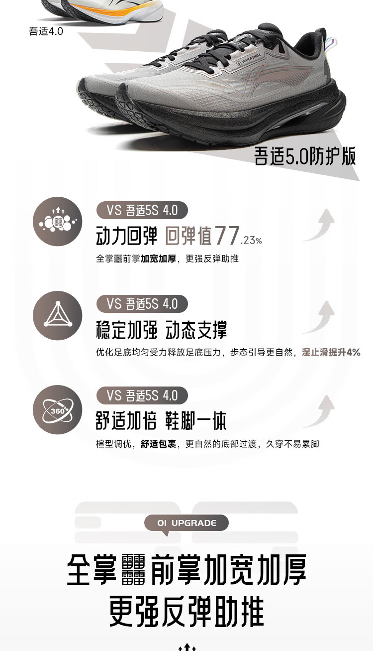 李宁吾适5.0防护版竞训跑步鞋男秋冬支撑稳定防泼水休闲运动鞋ARSV123