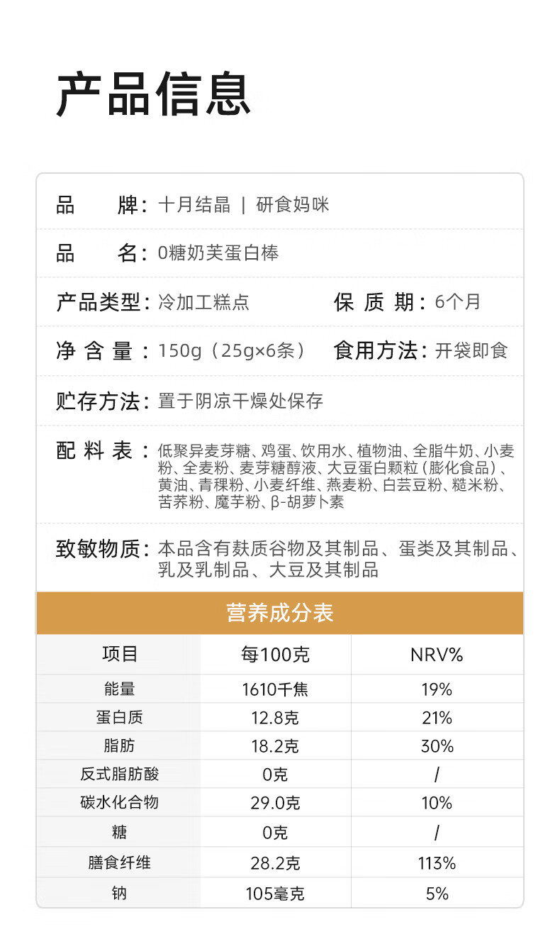 十月结晶研食妈咪奶芙蛋白棒孕期解馋谷物高蛋白孕妇休闲零食150g