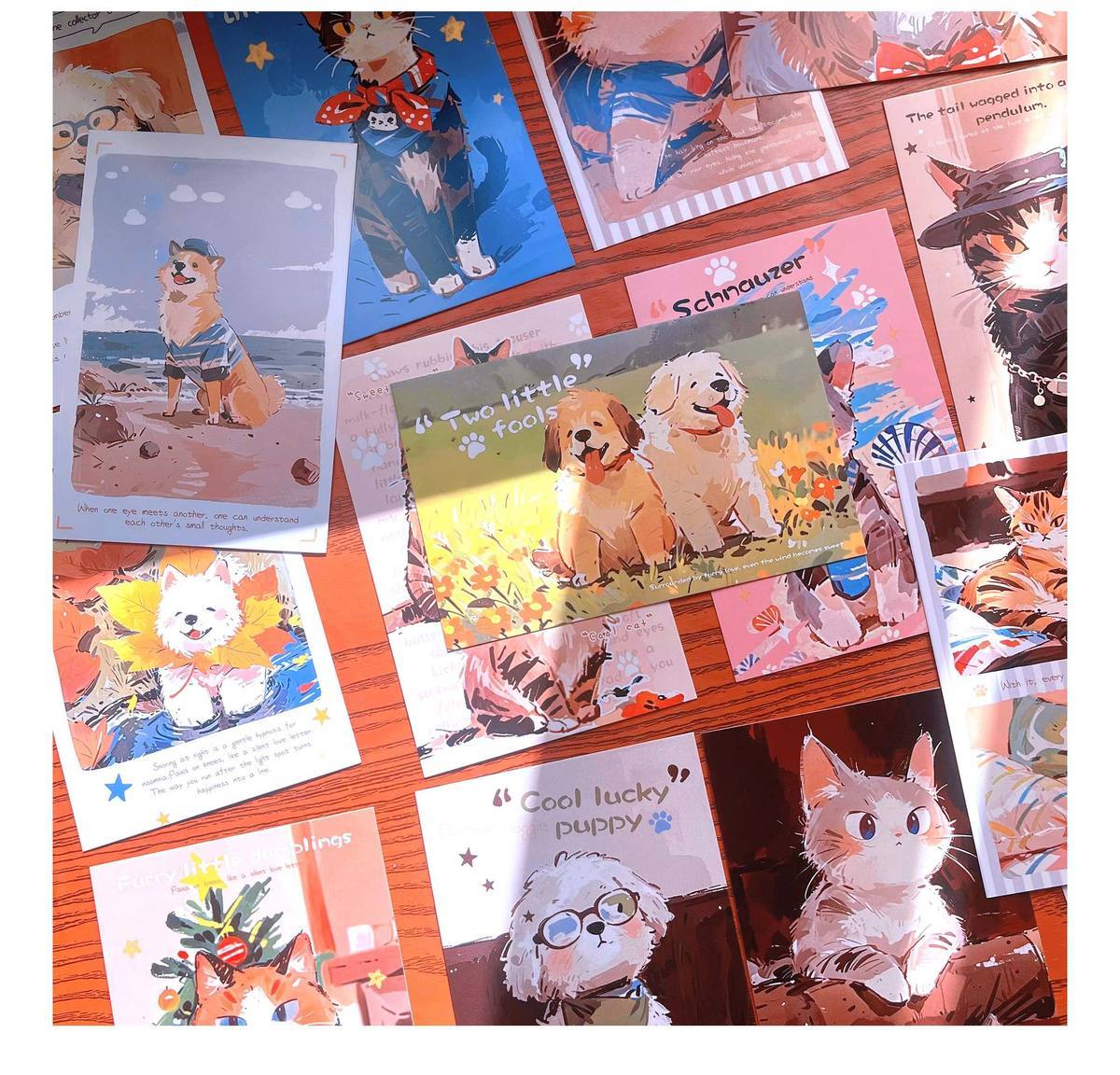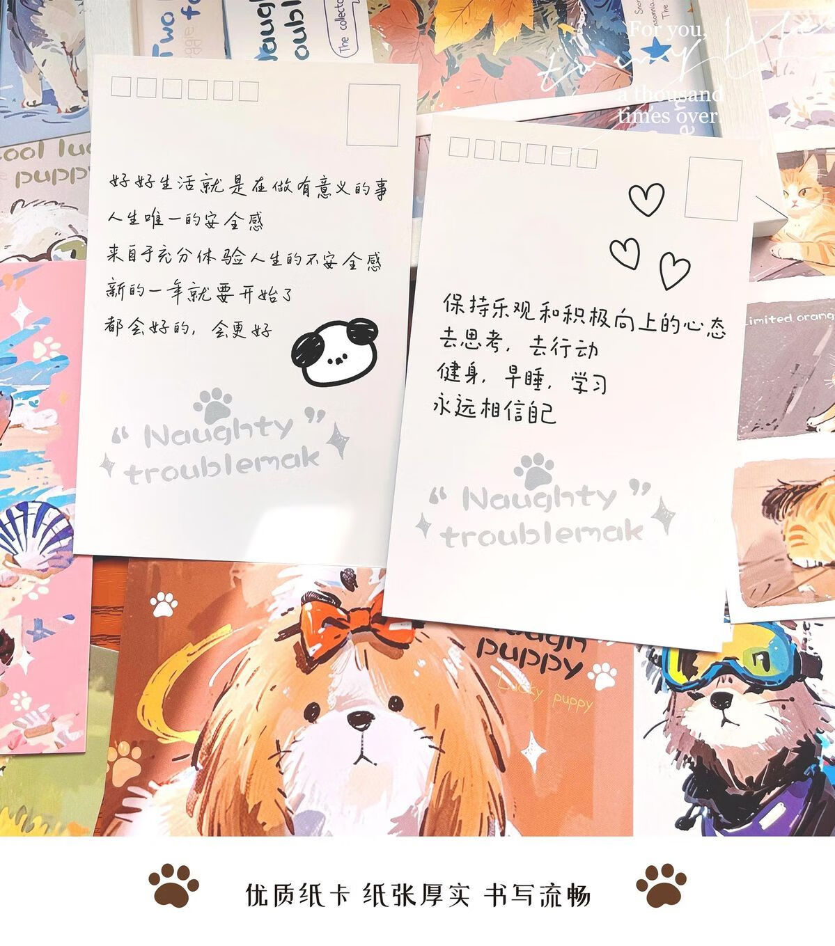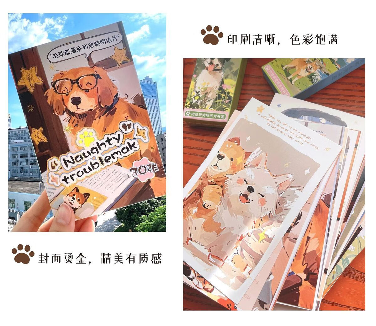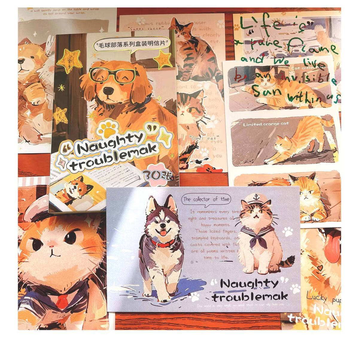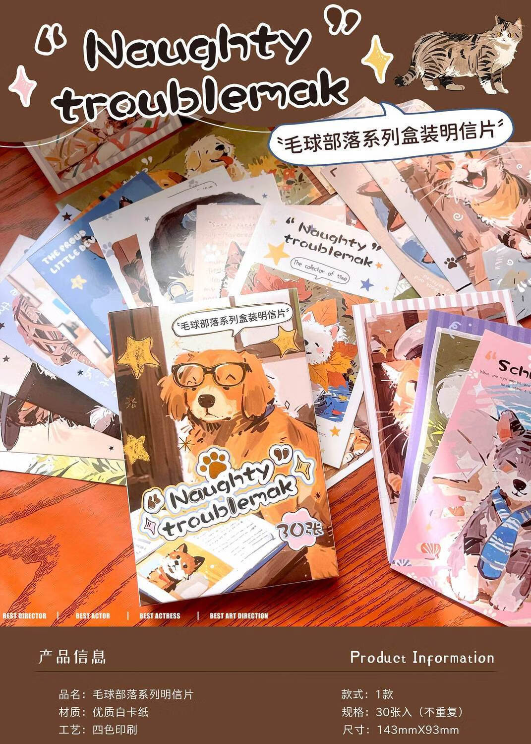 嘟嘟麦毛球部落盒装留言明信片卡通萌宠小狗小猫插画节日礼物装饰贺卡片 毛球部落-明信片30张入