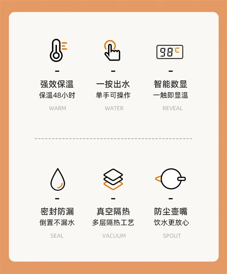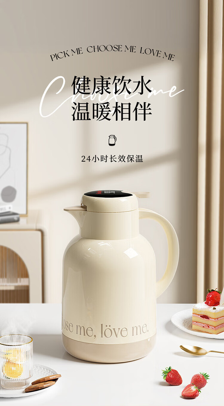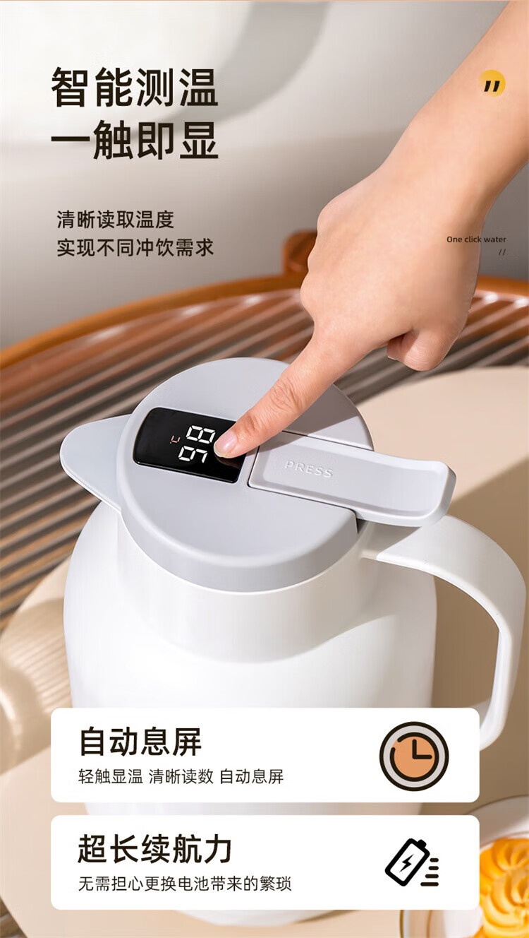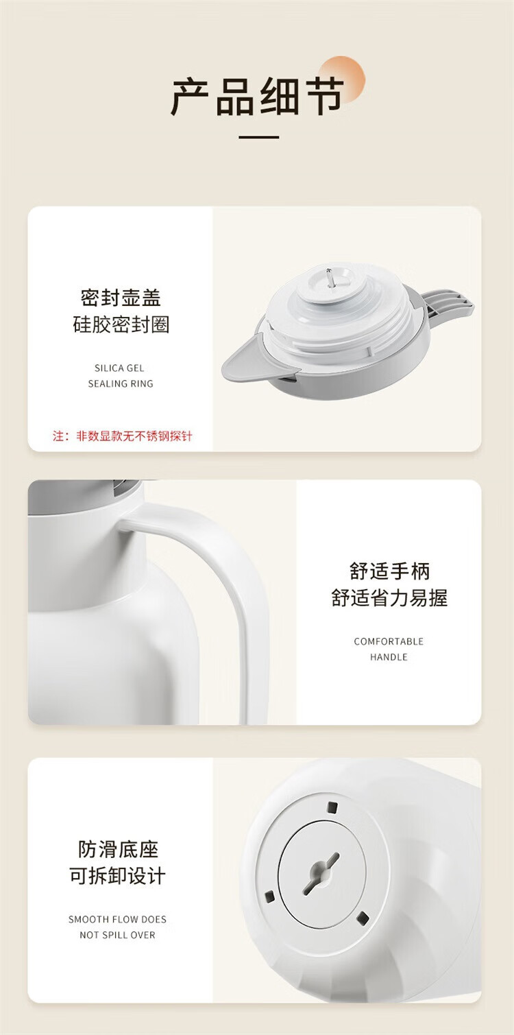 苏泊尔(SUPOR)72小时长效保温壶大容量热水瓶家用保温水壶2024新款办公室保温瓶 灰色1L