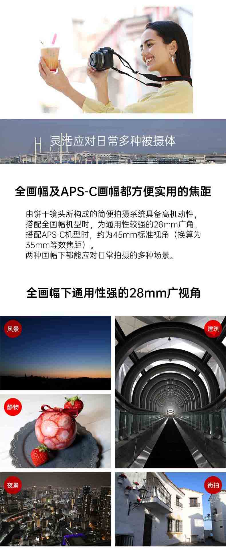 佳能(Canon) RF28mm F2.8RF人像镜头 饼干定焦小痰盂 全画幅EOS R7 R10 R5 R6 R50 R8系列专用镜头 RF28F2.8