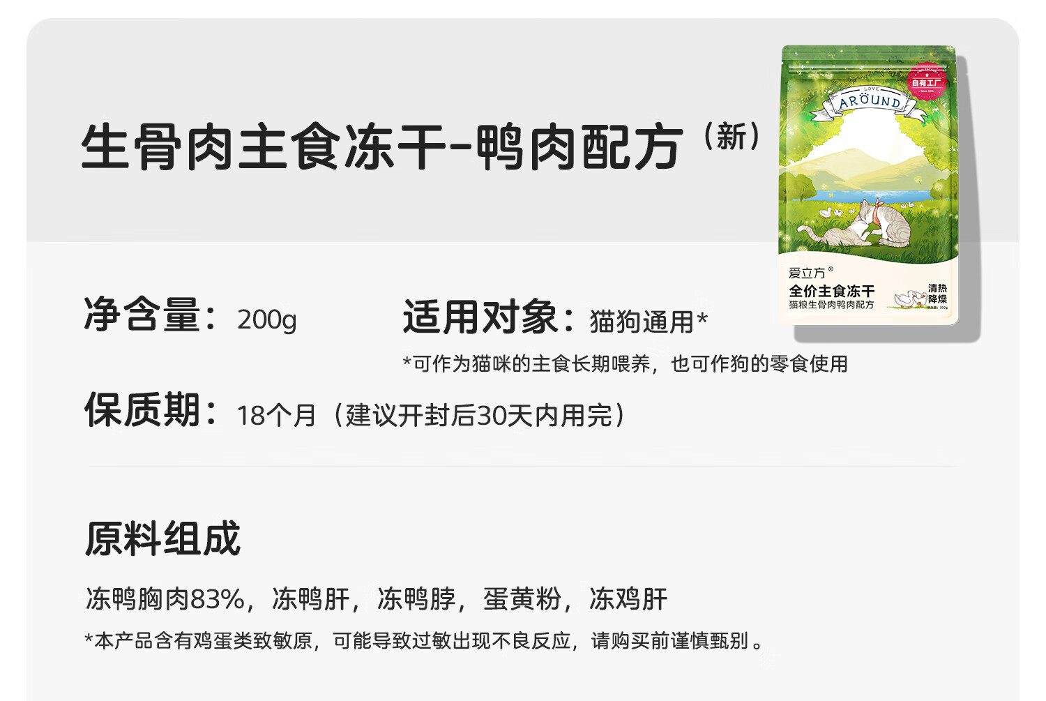 爱立方冻干猫粮幼猫成猫营养鸡肉鸭肉鹌鹑冻干生骨肉 鸡肉冻干60g