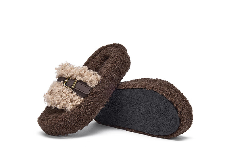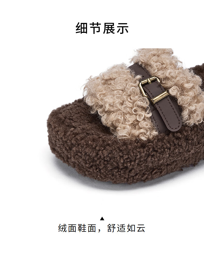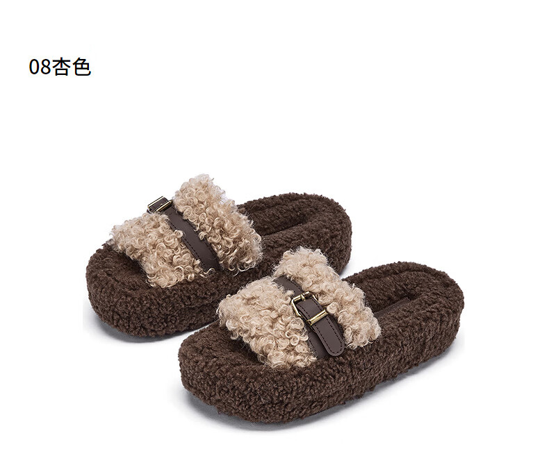 热风(Hotwind)加绒毛毛鞋女2025年冬季新款厚底小个子百搭拖鞋休闲家居拖 08杏色 37-38 37-38
