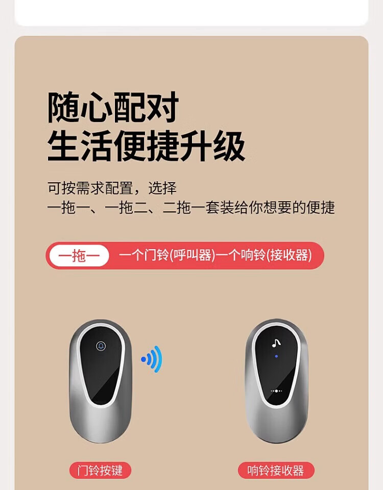 国际电工免布线无线防盗门铃户外防水家用感应器呼叫器大音量远距离感应器 升级款银黑色 1个按铃+1个响铃