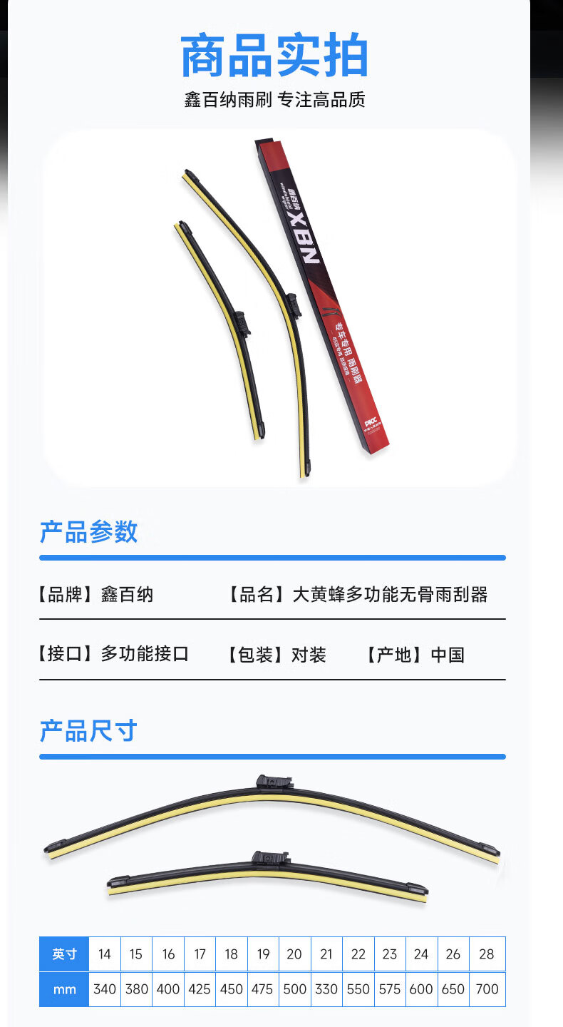 鑫百纳(xinbaina)本田飞度无骨雨刷器轻音雨刮片【08-22款】原车尺寸汽车雨刷器
