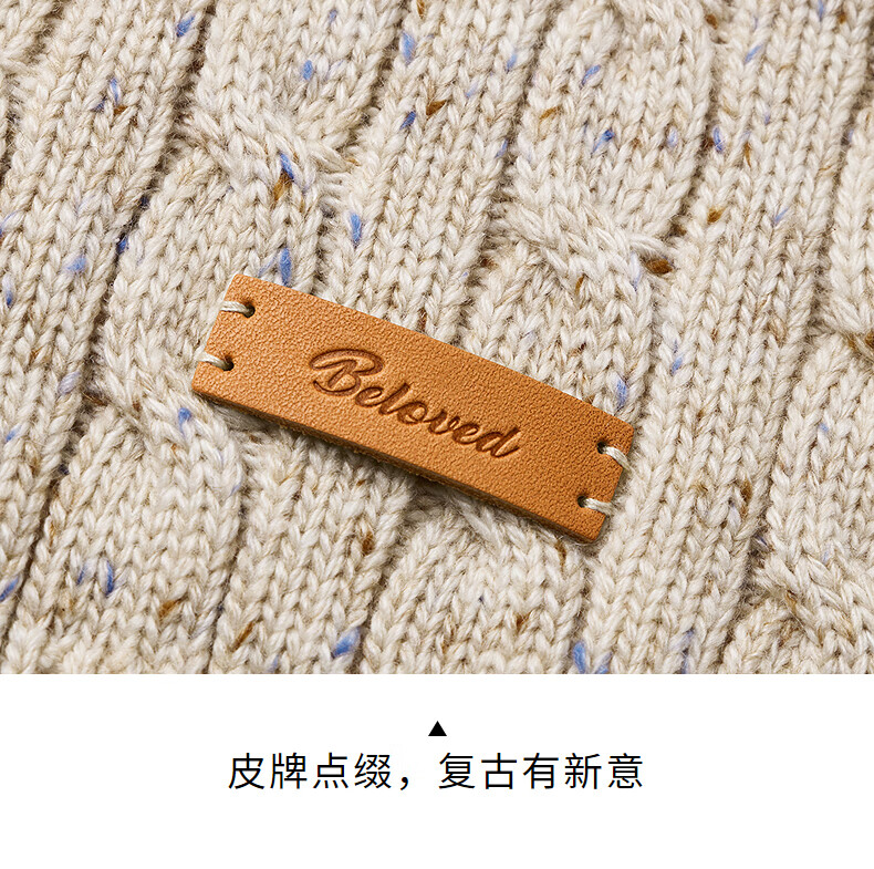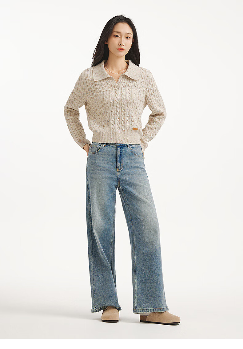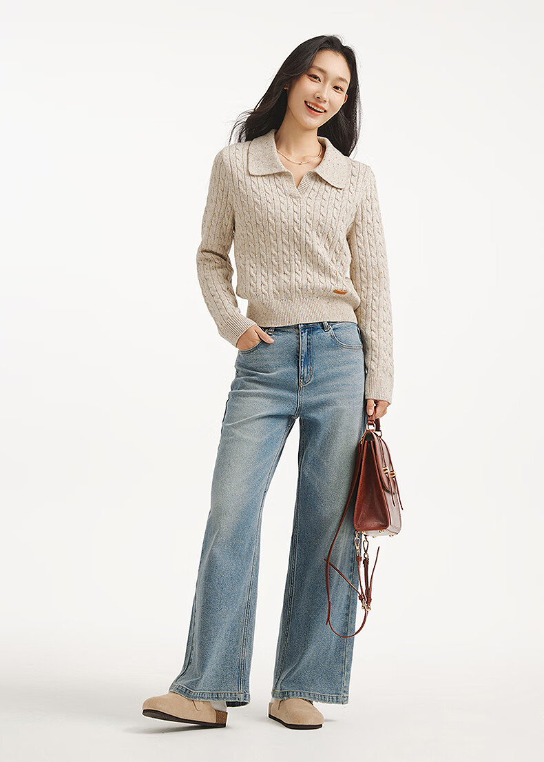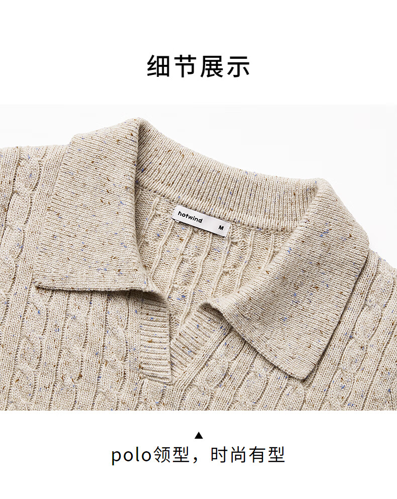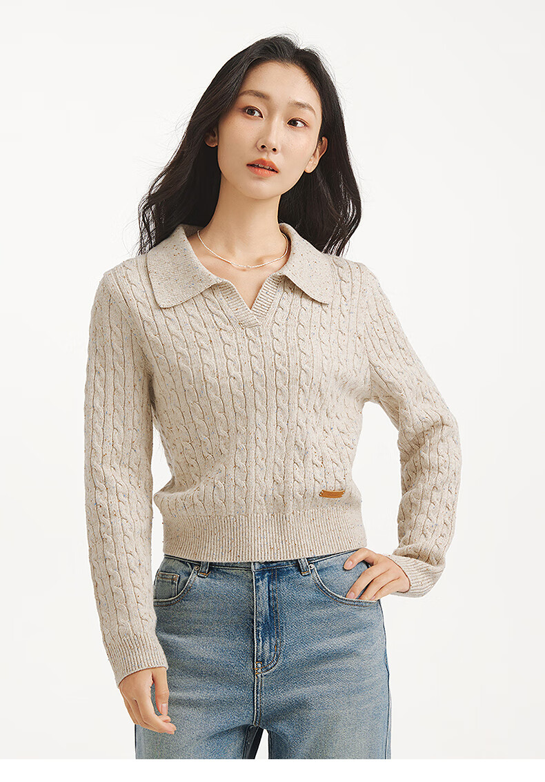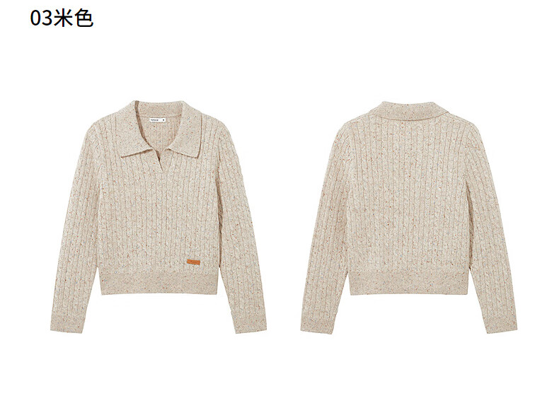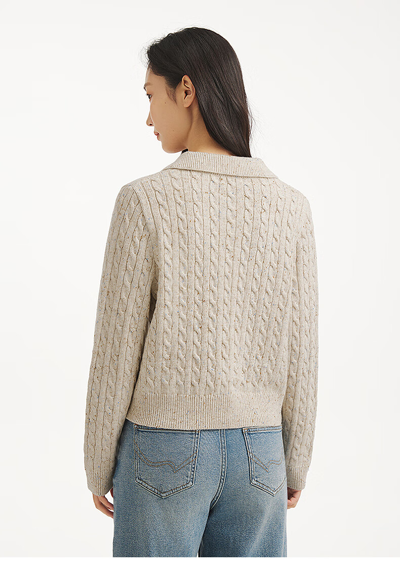 热风【商场同款】女士针织衫翻领老钱风毛衣2025年秋新款花纱绞花上衣 03米色 L