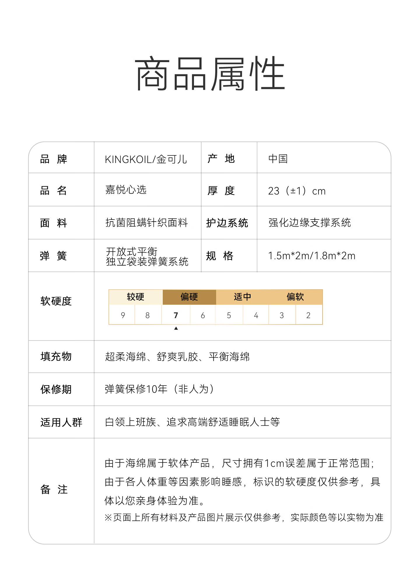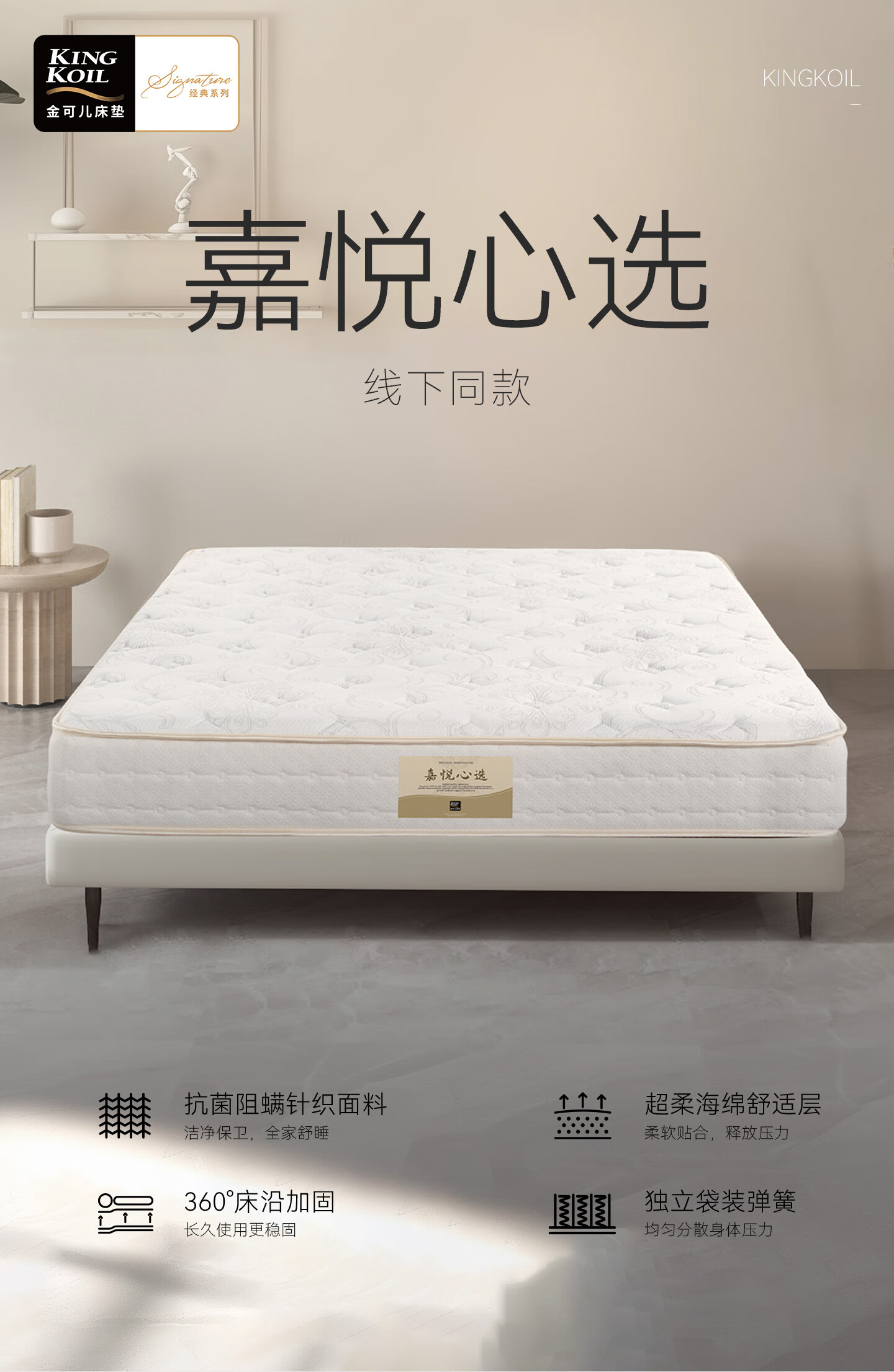 金可儿(Kingkoil)【商场同款】弹簧床垫开放式独袋弹簧偏硬护脊1.8x2米酒店款 嘉悦 嘉悦心选床垫 1.5米×2米