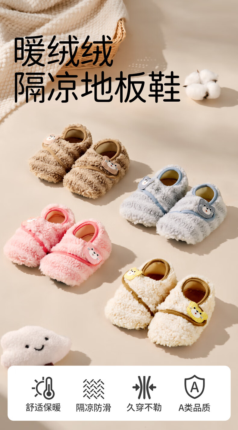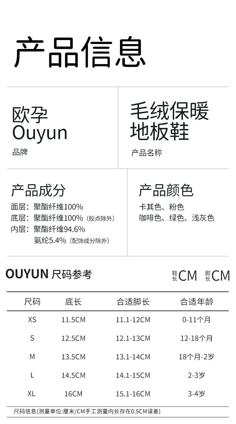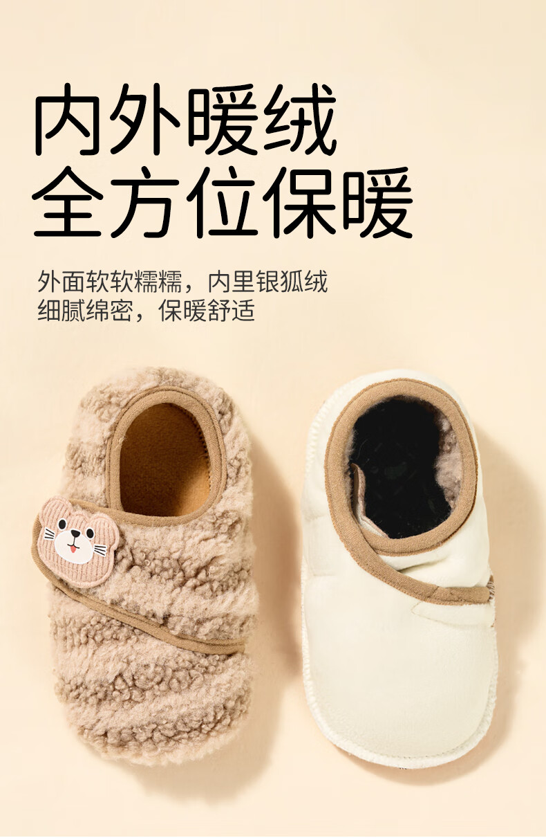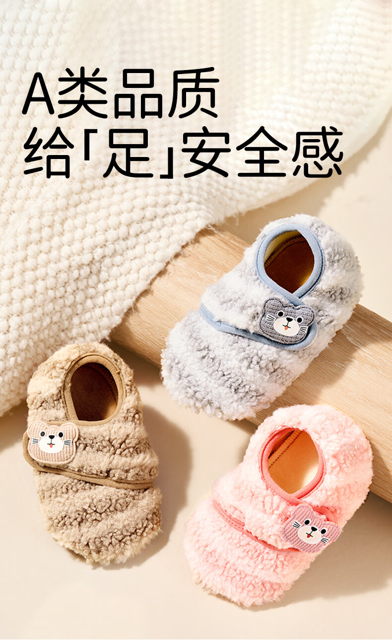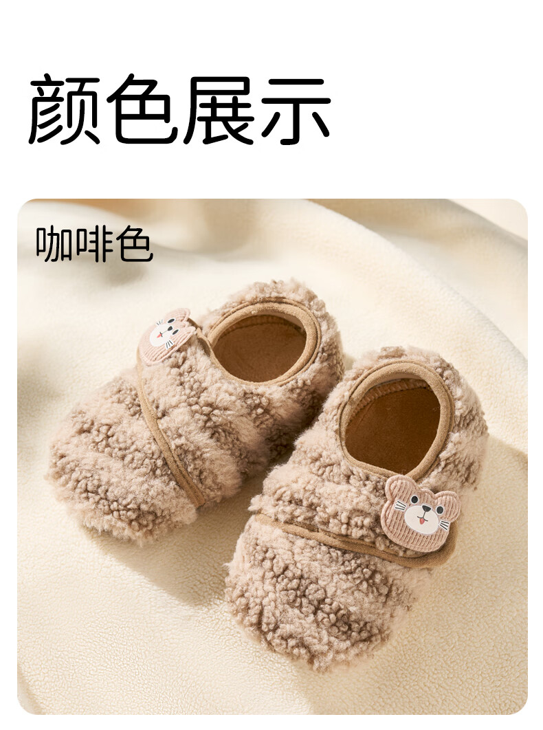 欧孕(OUYUN)宝宝鞋袜秋冬婴儿鞋6到12个月软底防滑步前鞋室内居家地板鞋 咖啡色 12 S 脚长12.1-13cm推荐12-18月