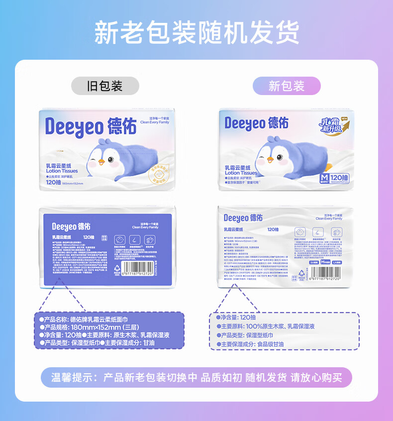 德佑婴儿云柔巾保湿纸巾乳霜纸120抽24包儿童超柔抽纸M码