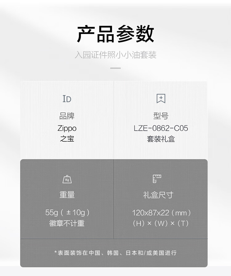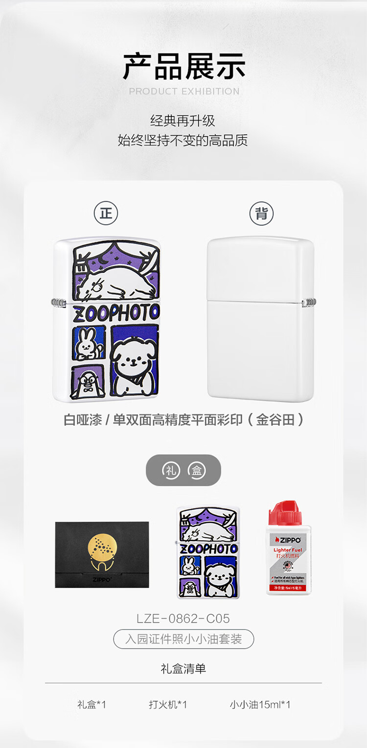ZIPPO打火机之宝防风煤油 入园证件照 生日礼物送老公送男友 含油套装