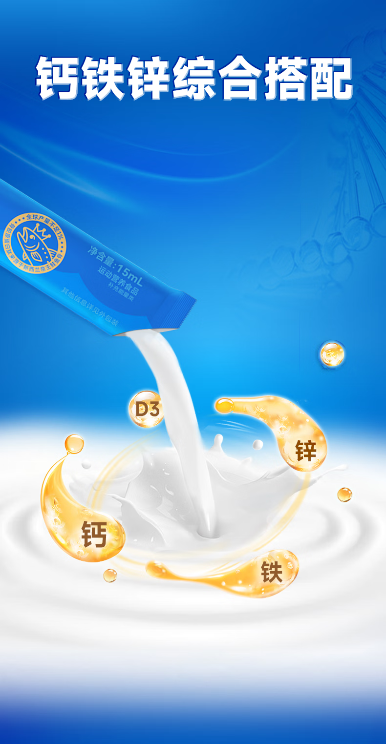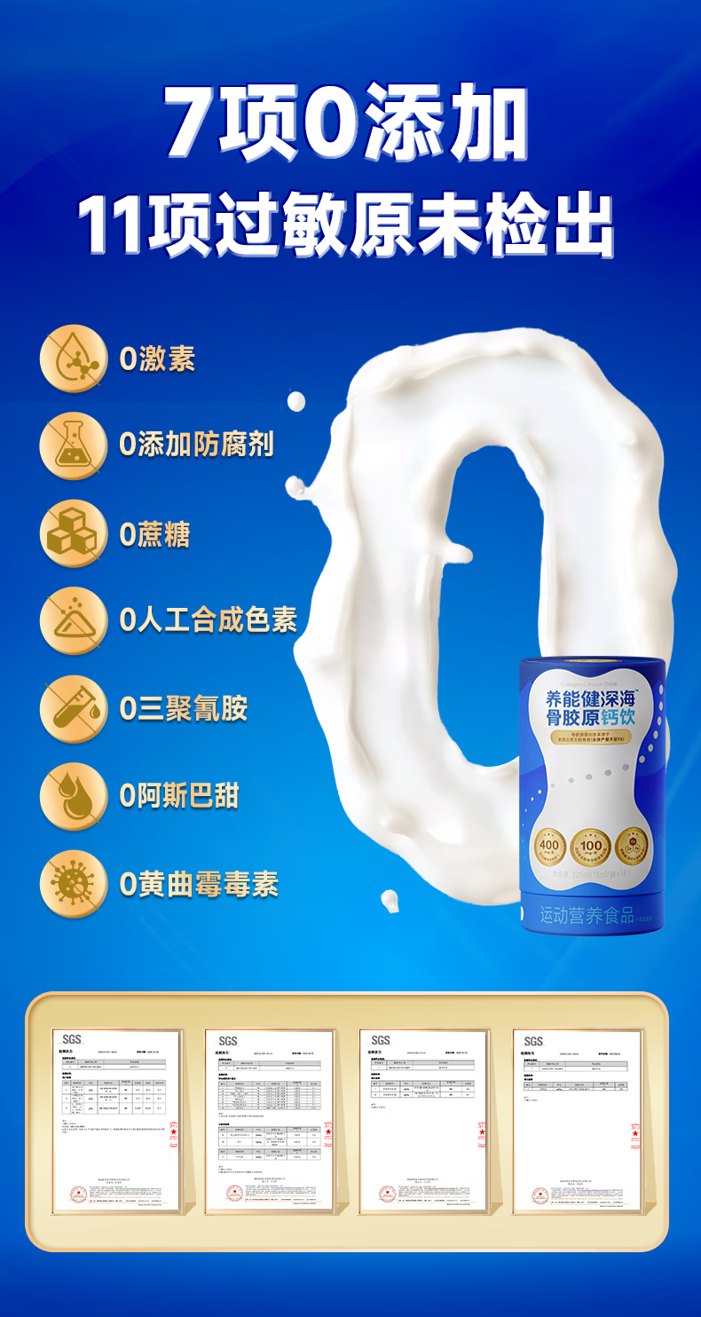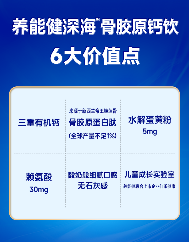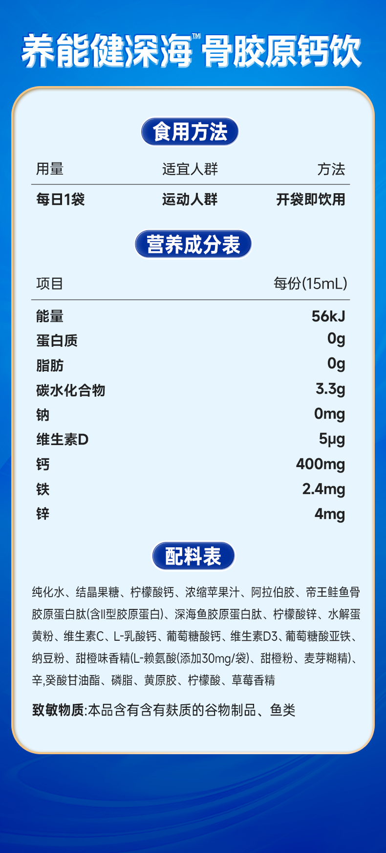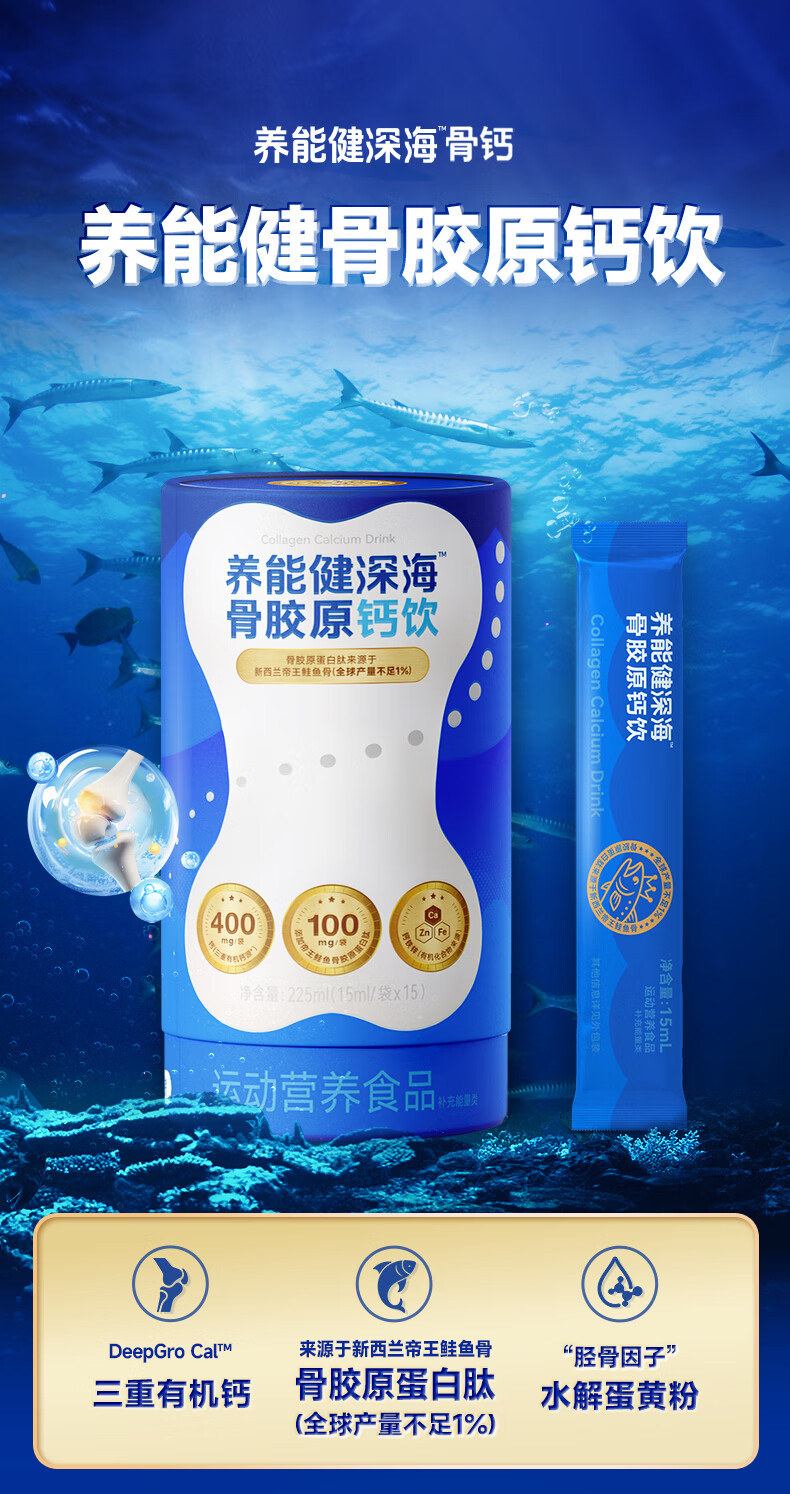 养能健深海骨胶原钙饮 钙铁锌直饮包口服液体钙有机柠檬酸钙6罐装