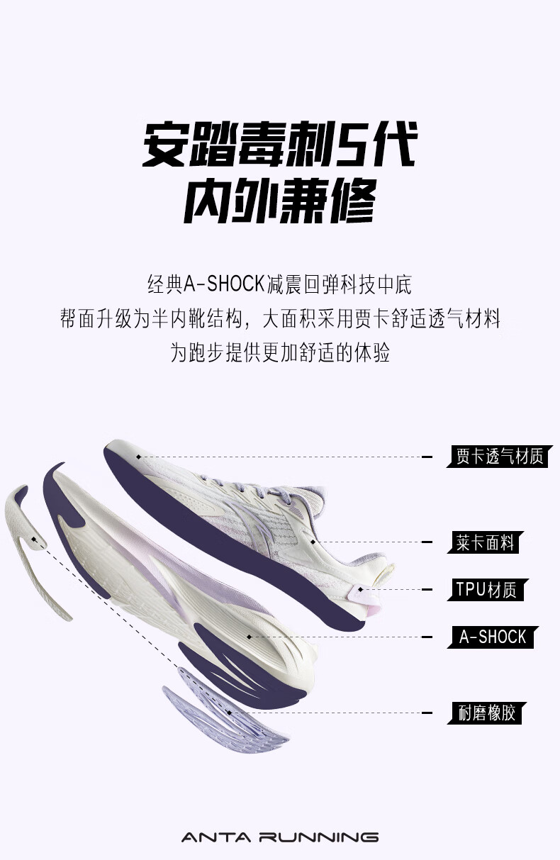 安踏毒刺5丨专业减震跑步鞋女透气轻便耐磨回弹运动鞋跳绳鞋女鞋
