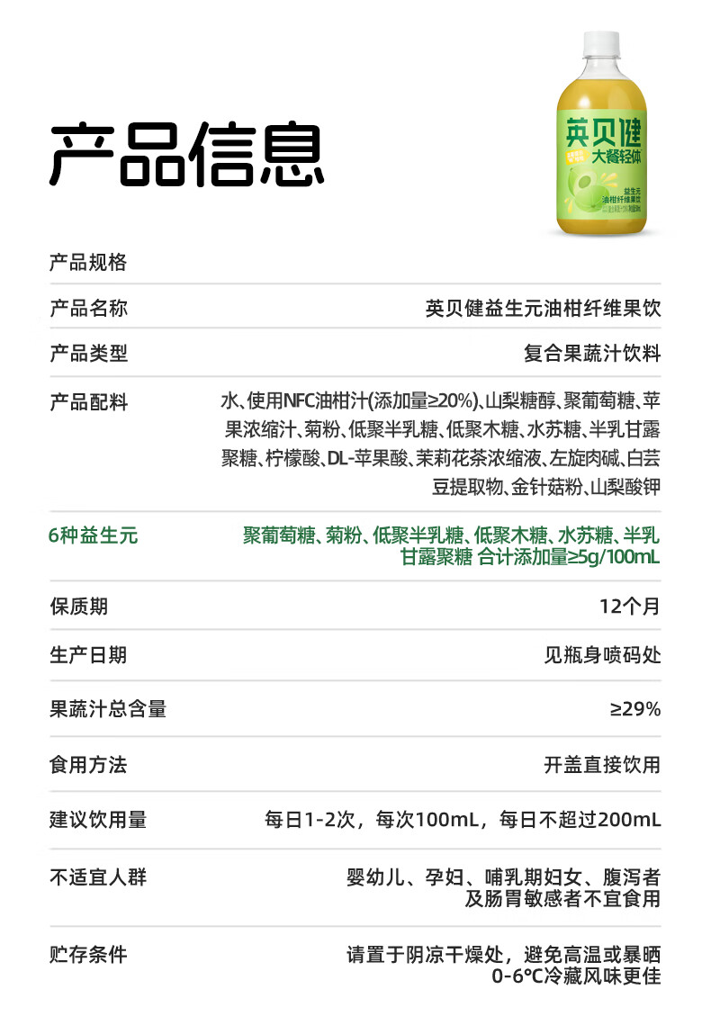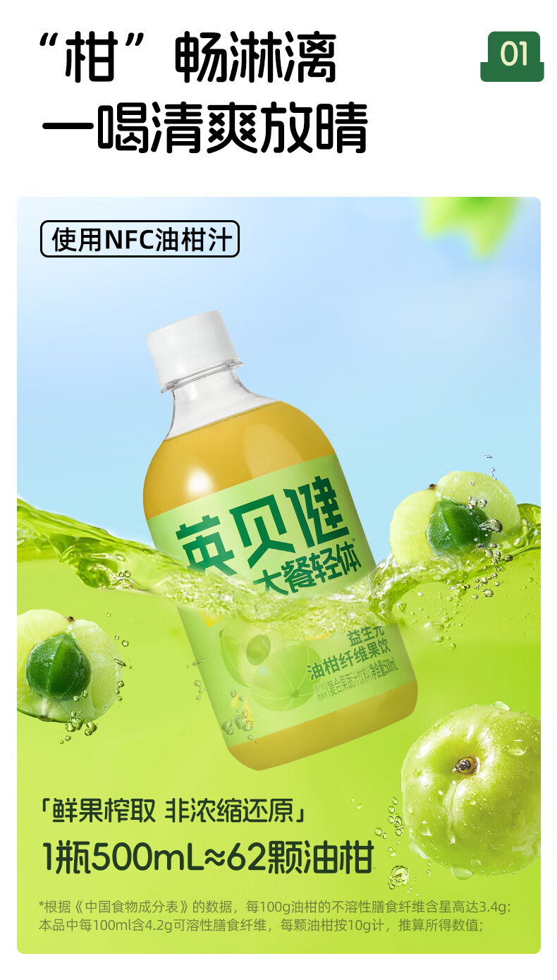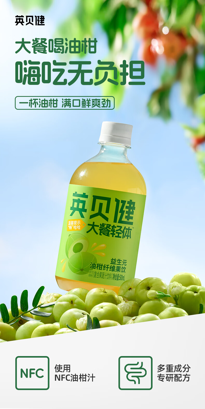 英贝健 油柑汁大餐轻体益生元油柑纤维果饮NFC生鲜榨浓缩原浆果蔬饮料 油柑汁5瓶装
