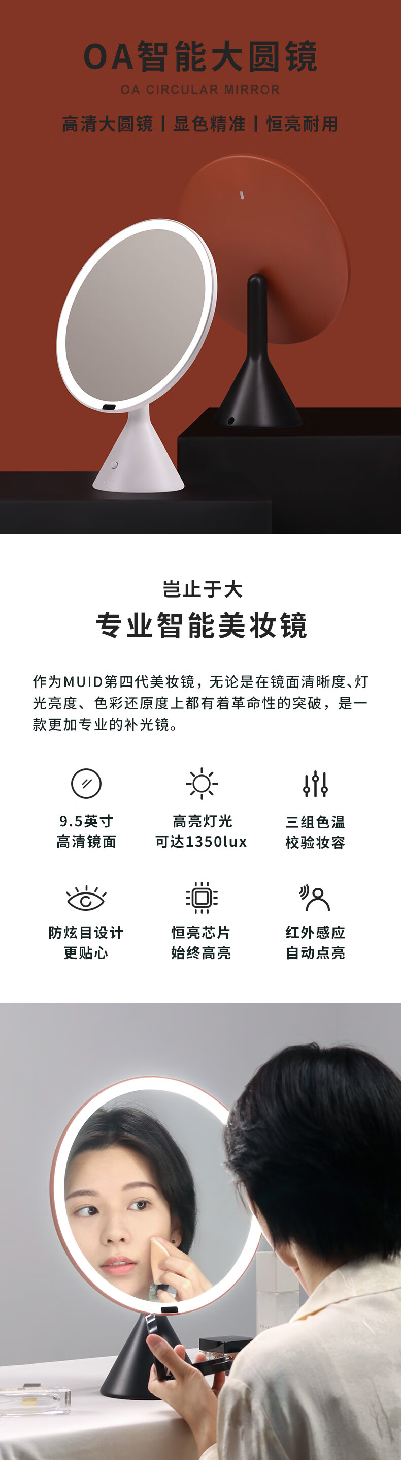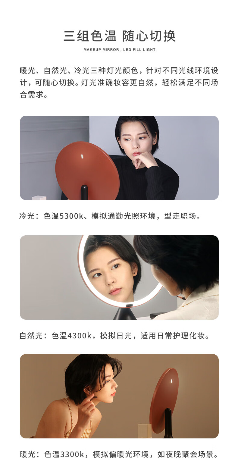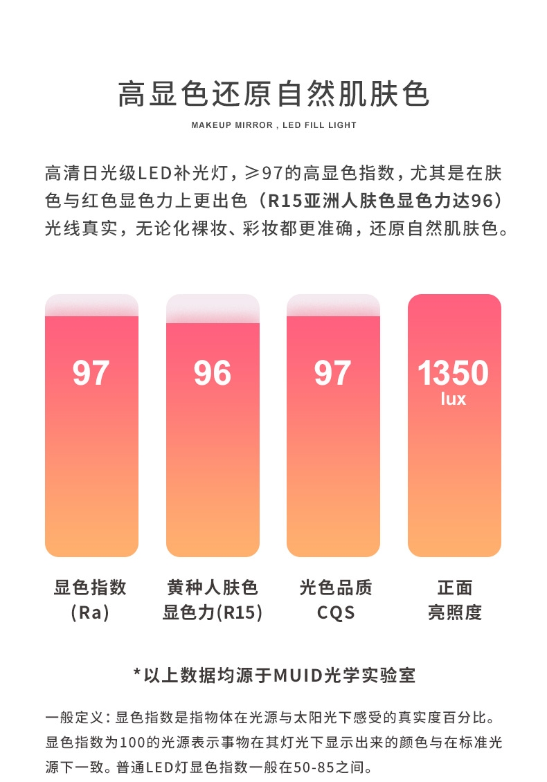 MUID教师节礼物化妆镜带灯led美妆镜梳妆镜大圆镜子生日礼物女生