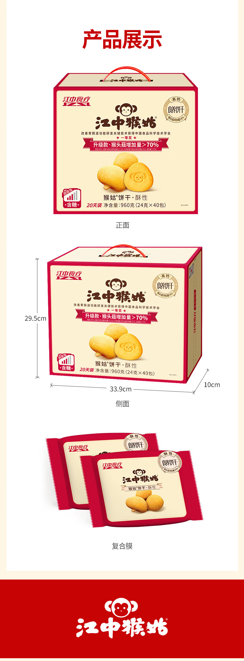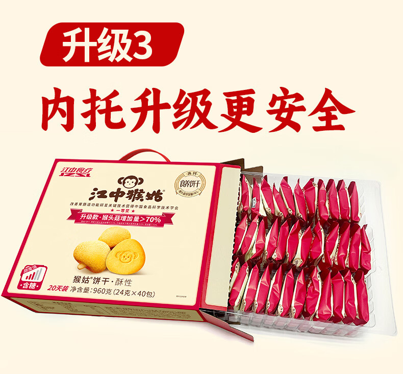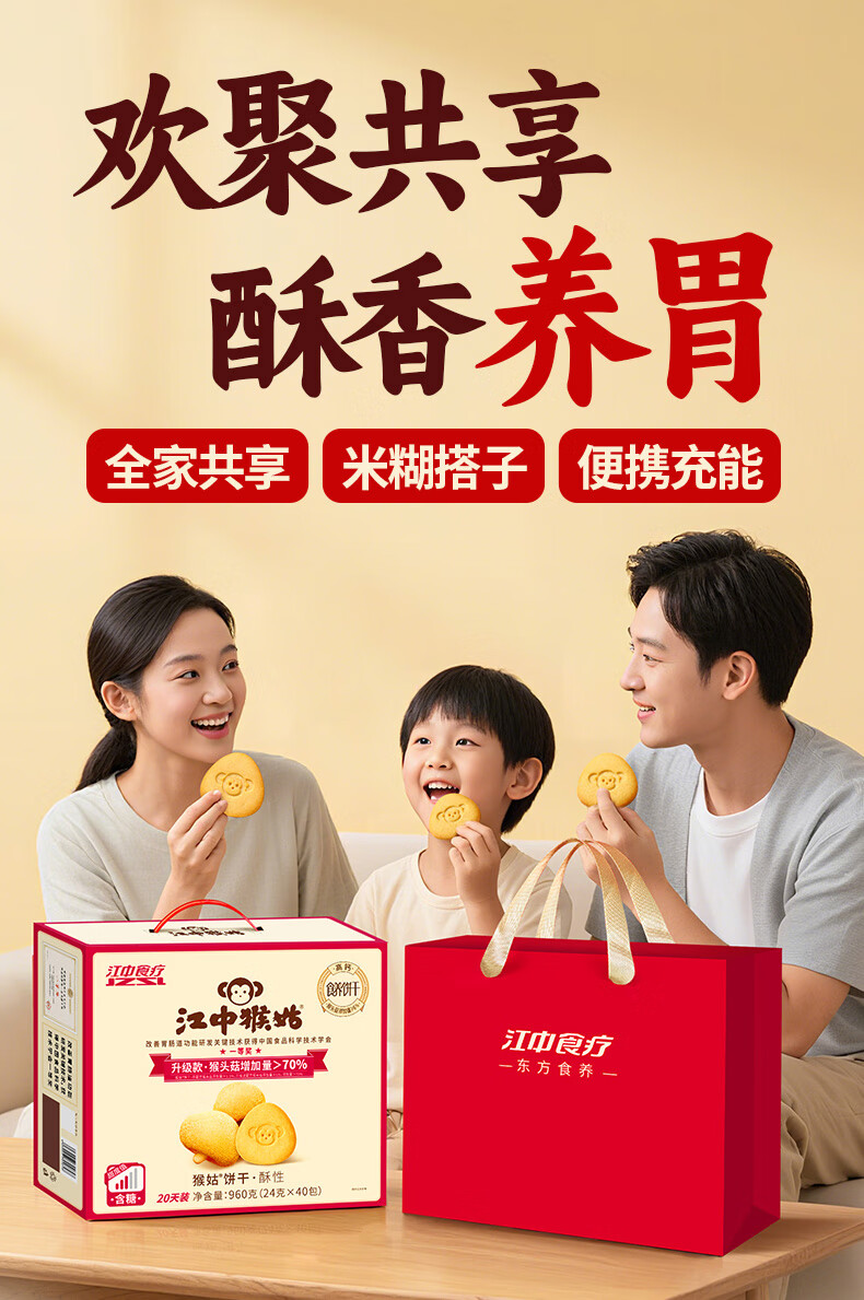 江中猴姑经典酥性饼干养胃猴头菇肠胃调理食品早餐代餐零食儿童送礼盒 【无手提自留】有糖酥性960g