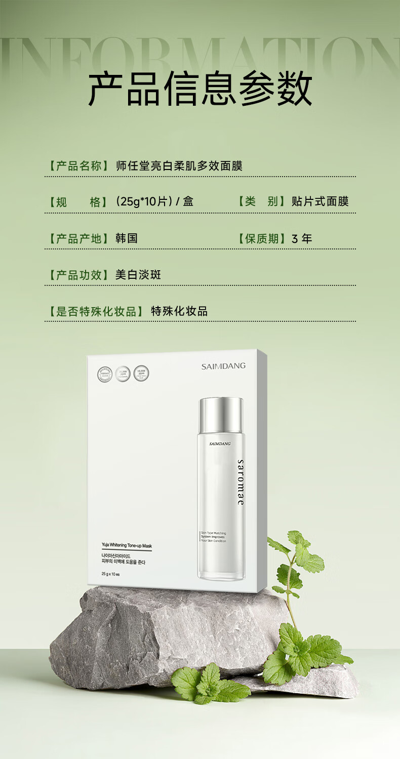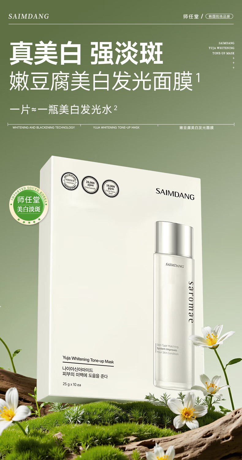 师任堂美白淡斑面膜嫩豆腐发光护肤嫩肤去黄提亮肤色缓解暗沉 【超值囤货装】4盒/40片+1片