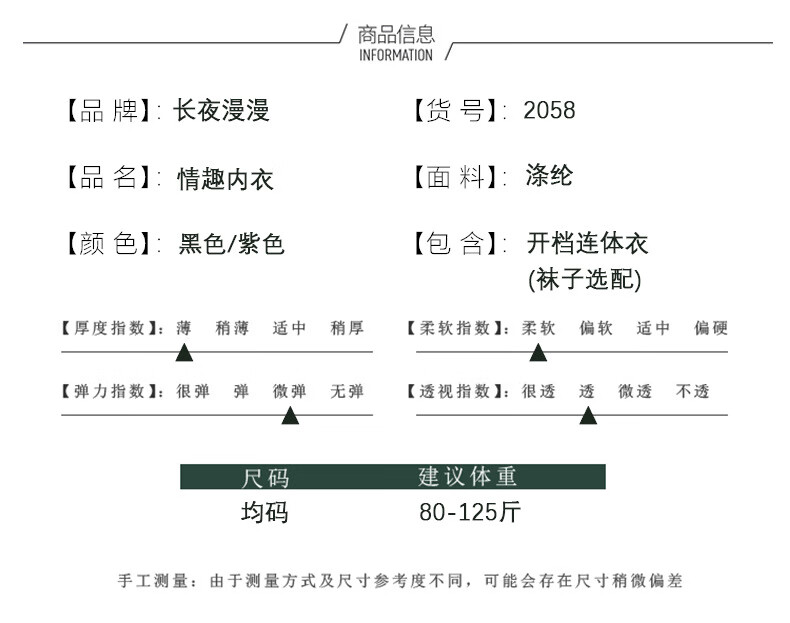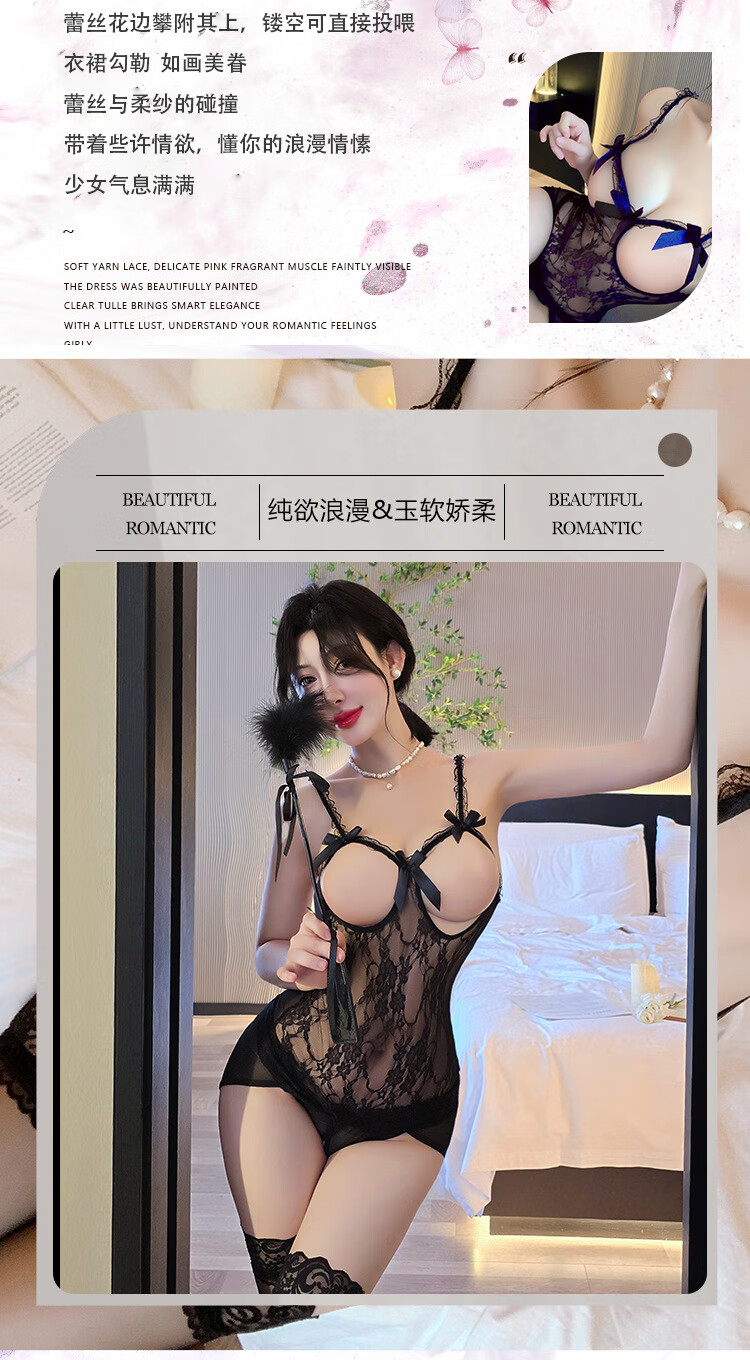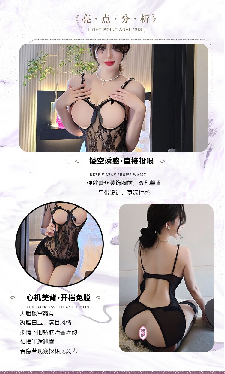 希格鲨长夜漫漫情趣内衣蕾丝诱惑免脱性感睡衣开裆连体衣制服诱惑女2058 黑色 超大码(160-200斤)