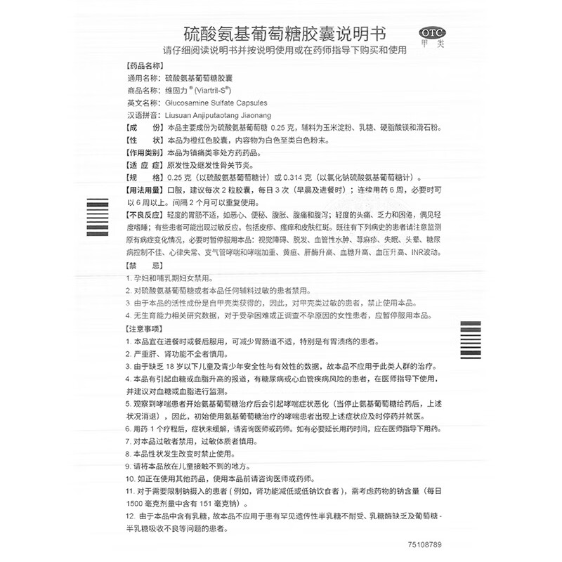 【原研药】维固力 硫酸氨基葡萄糖胶囊 0.25g*120粒/盒
