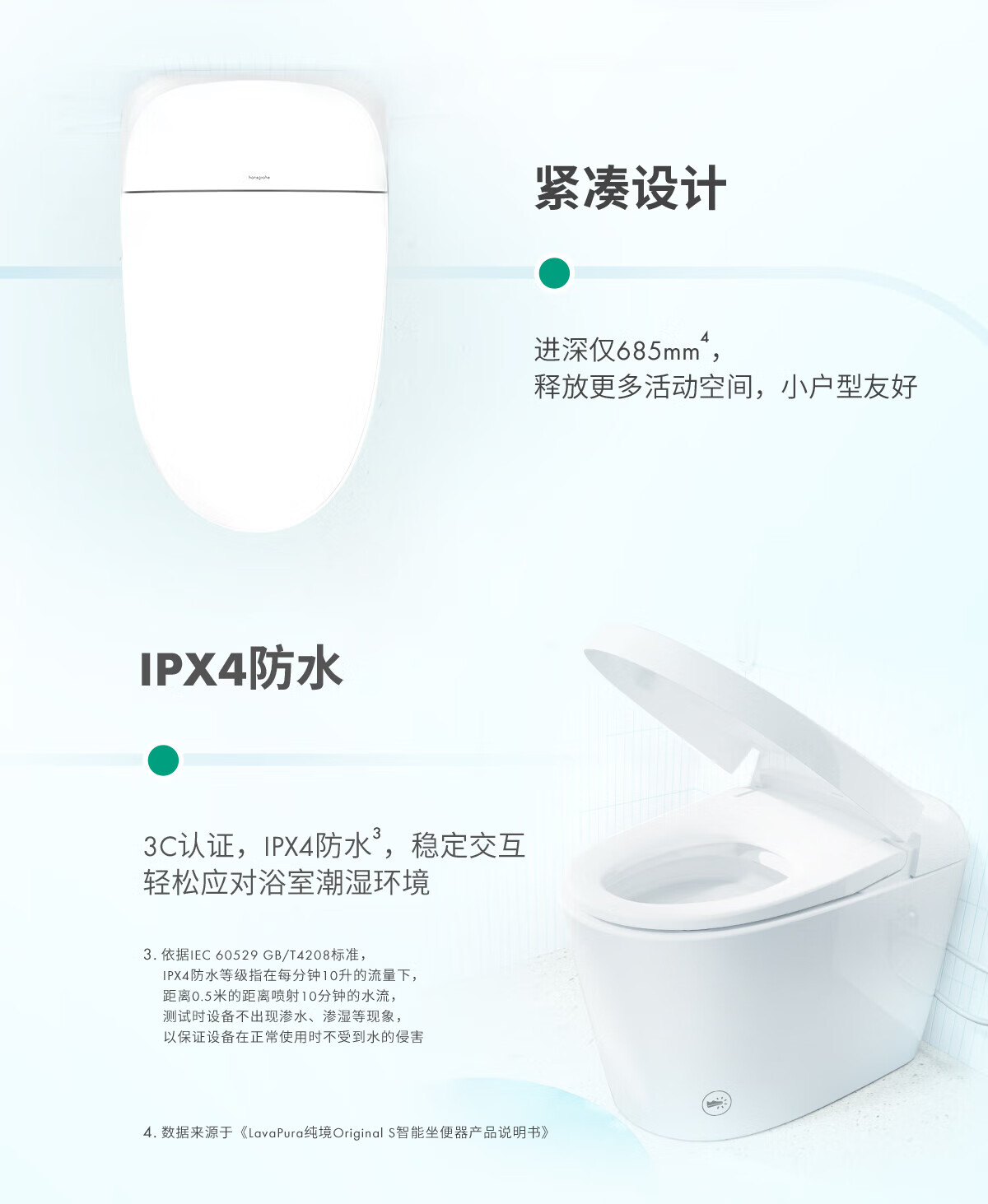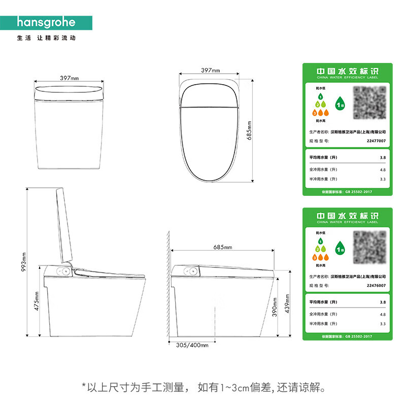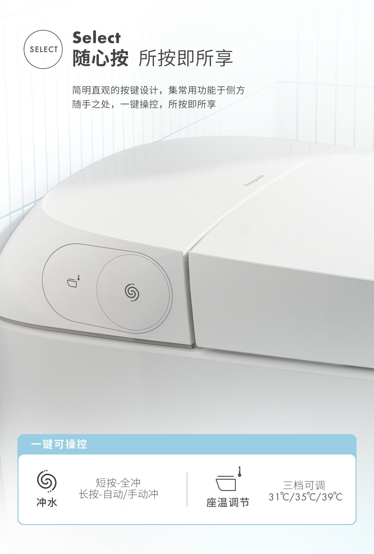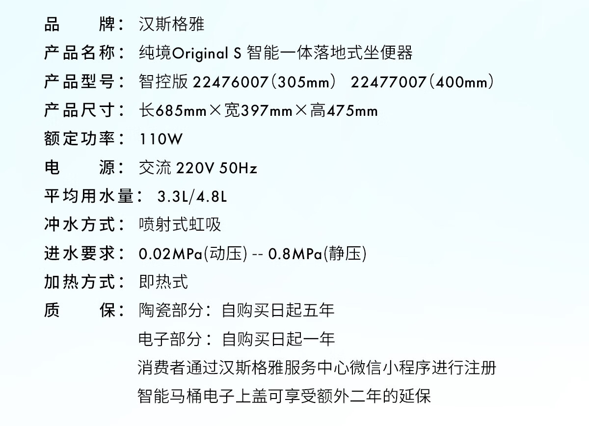 汉斯格雅(Hansgrohe)纯境Original S智能一体落地式坐便器智能马桶浴室卫生间智能机 纯境Original S智控版轻智能马桶【脚踢翻盖】 305mm