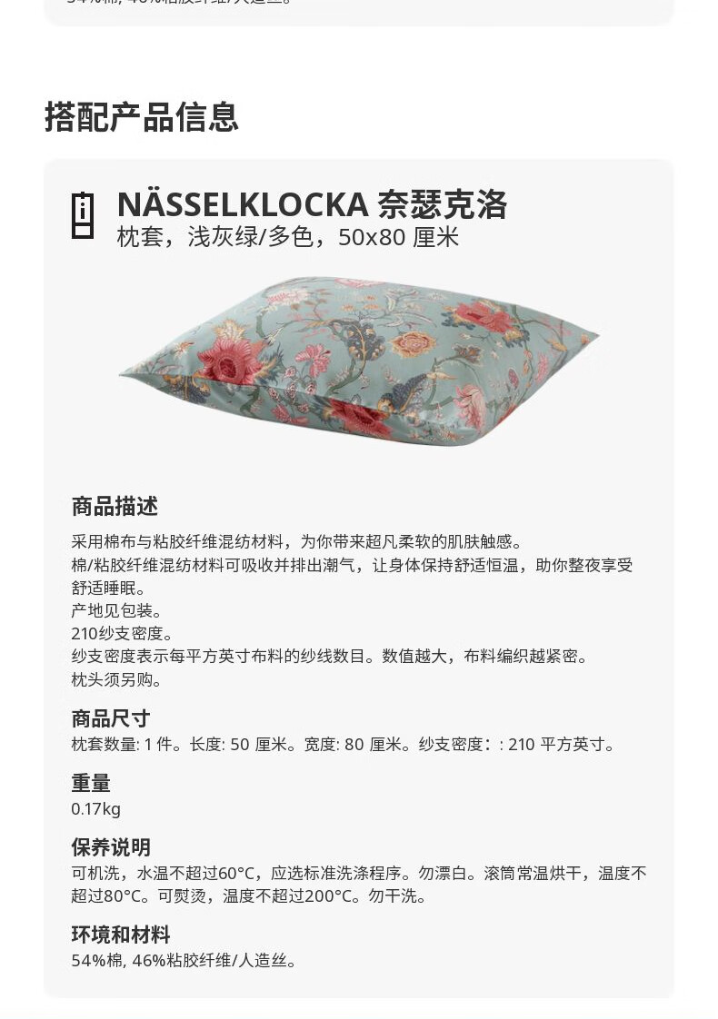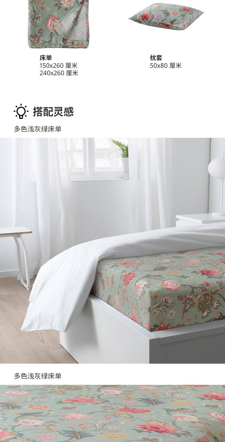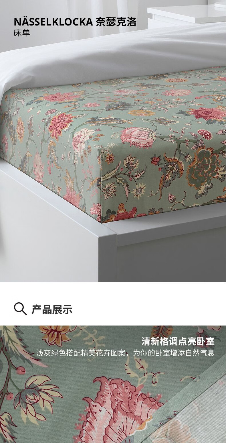 宜家(IKEA)【新品】NASSELKLOCKA奈瑟克洛床单可机洗多件套家用 多色浅灰绿床单150x260cm