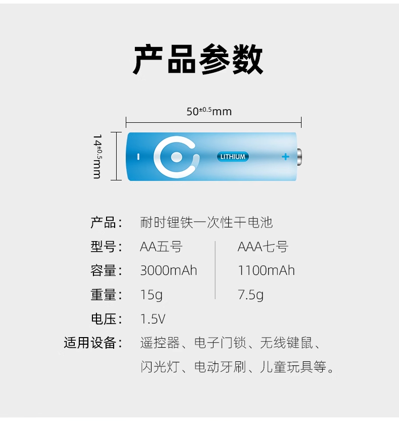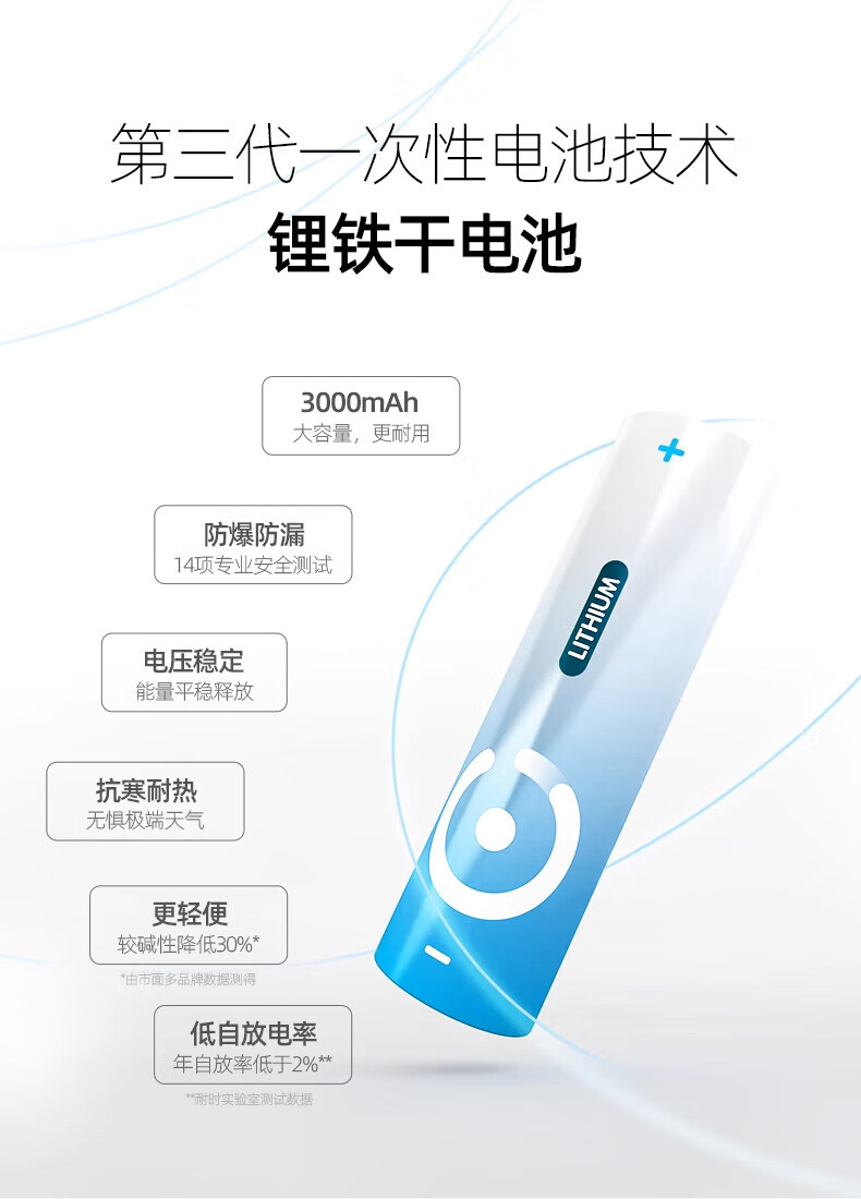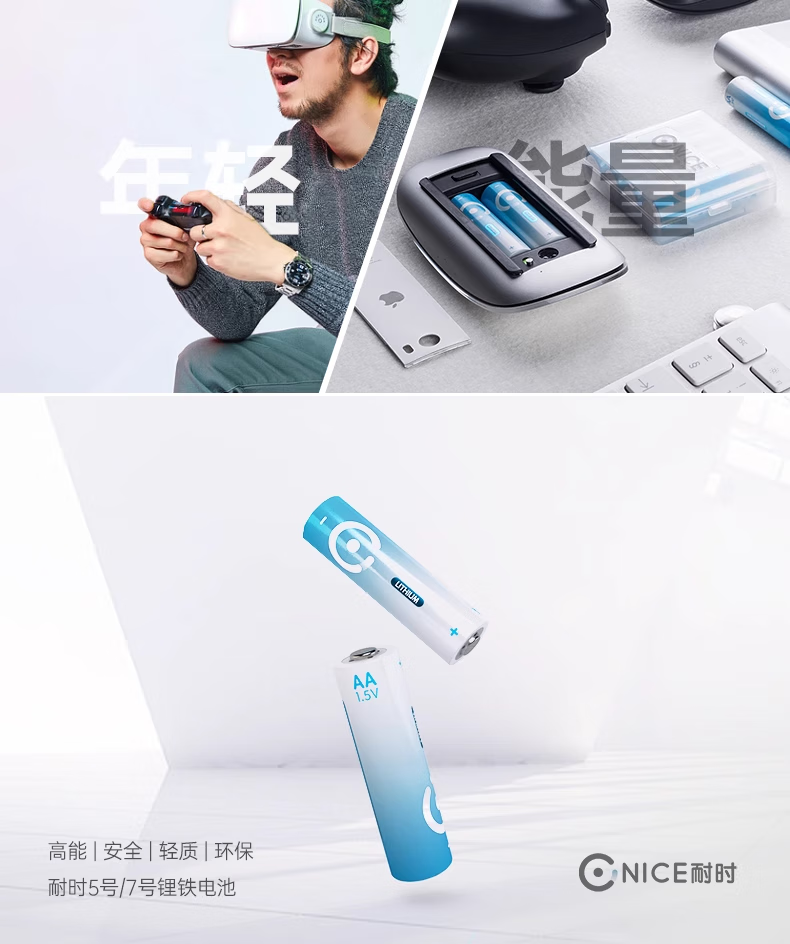 耐时(NICE)5号电池无汞环保锂铁电池 无线鼠标电池玩具电子秤血压仪血糖仪遥控器小风扇电池智能门锁 24节7号