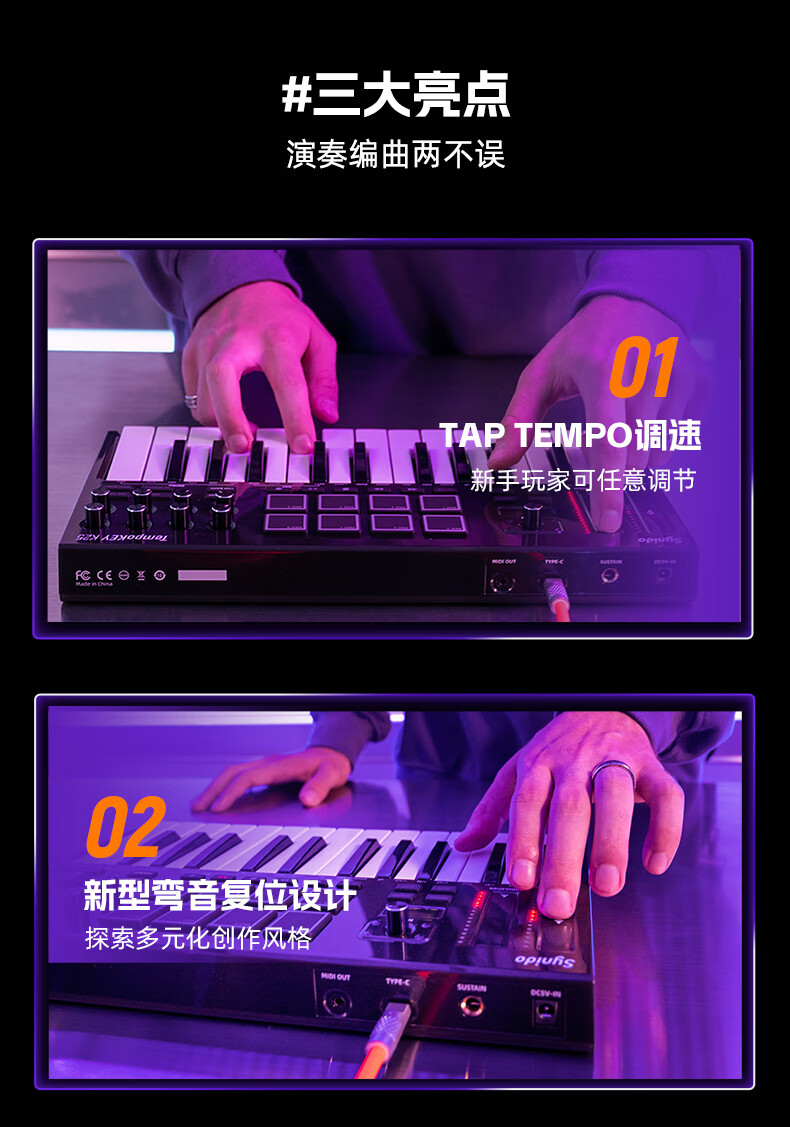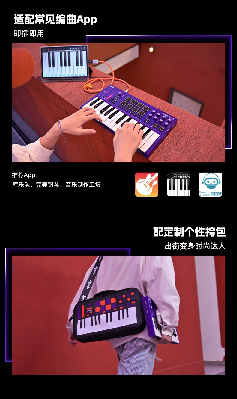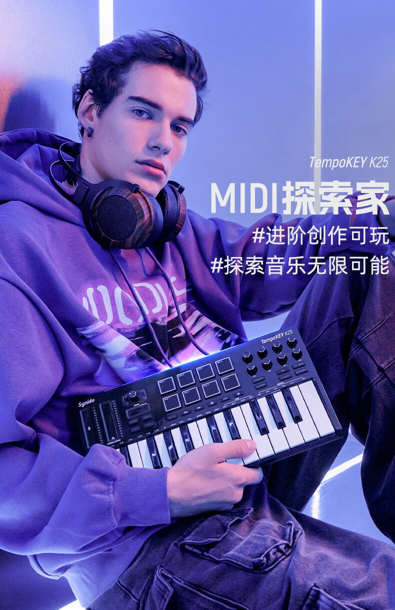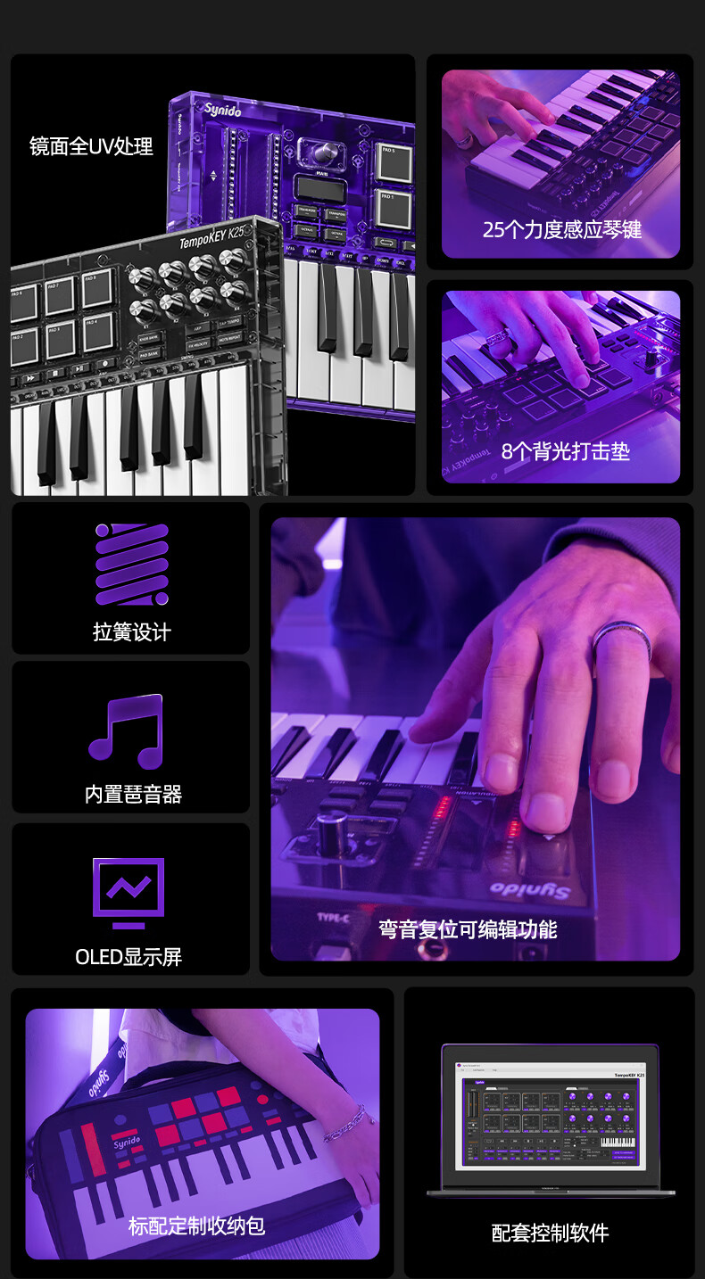 Synido森林岛编曲制作便携midi小键盘手机平板电脑适用TempoKEY K25控制 25键紫色TempoKEY K25