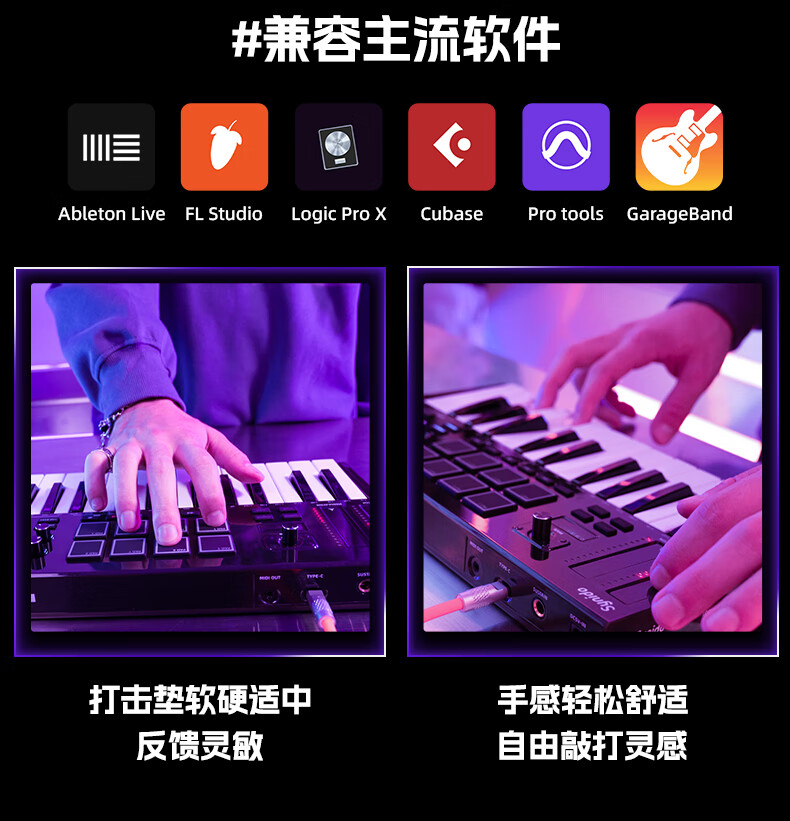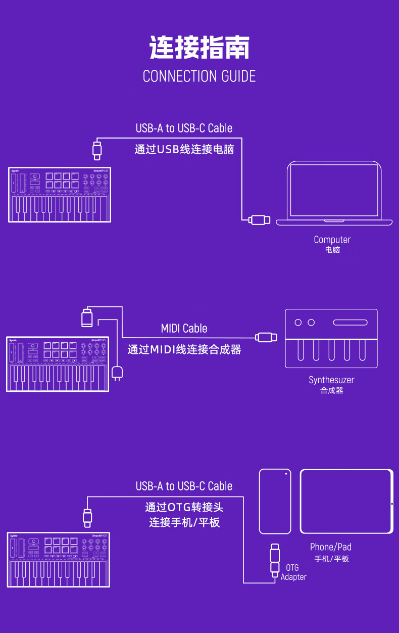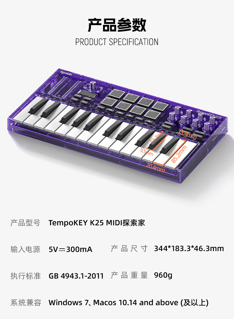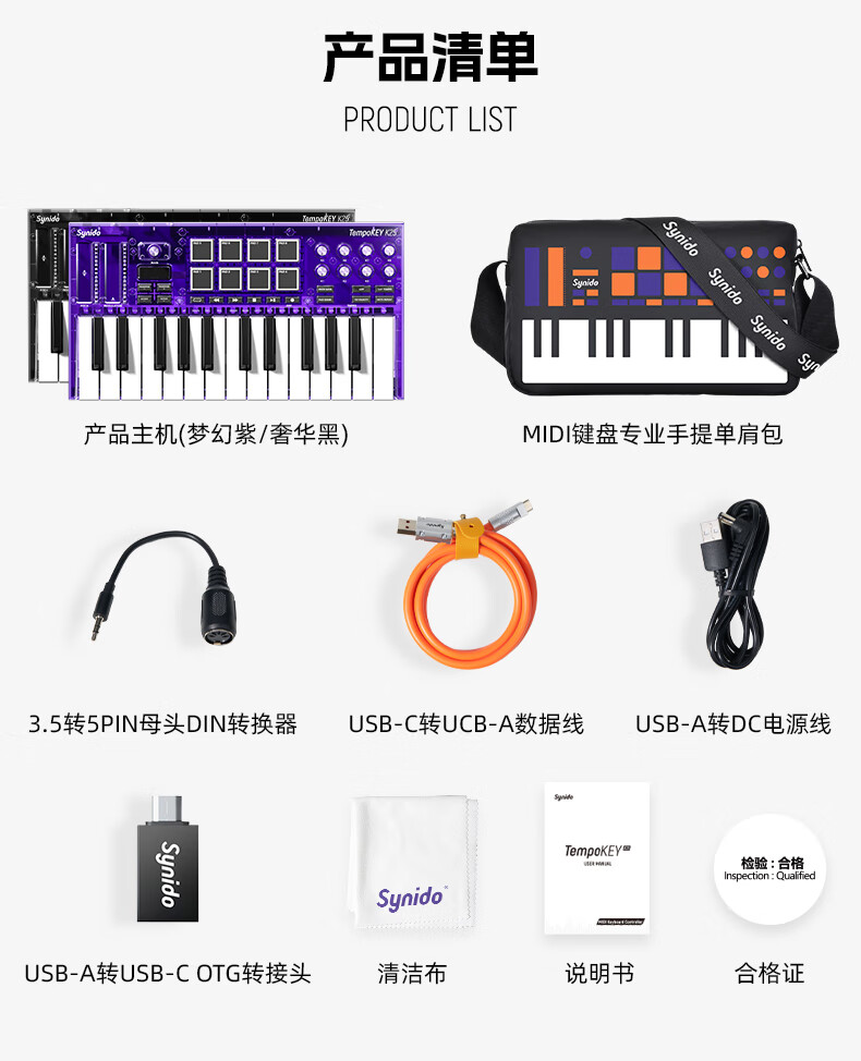 Synido森林岛编曲制作便携midi小键盘手机平板电脑适用TempoKEY K25控制 25键紫色TempoKEY K25
