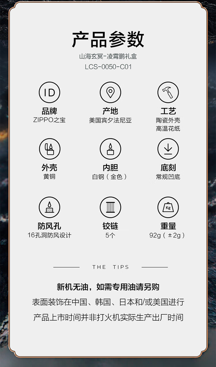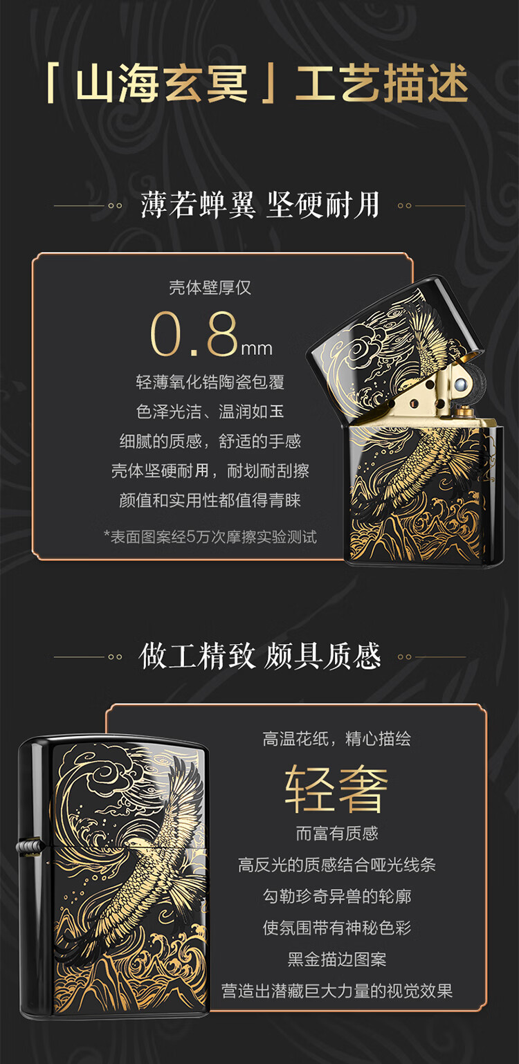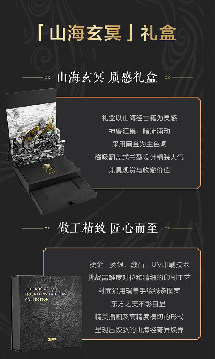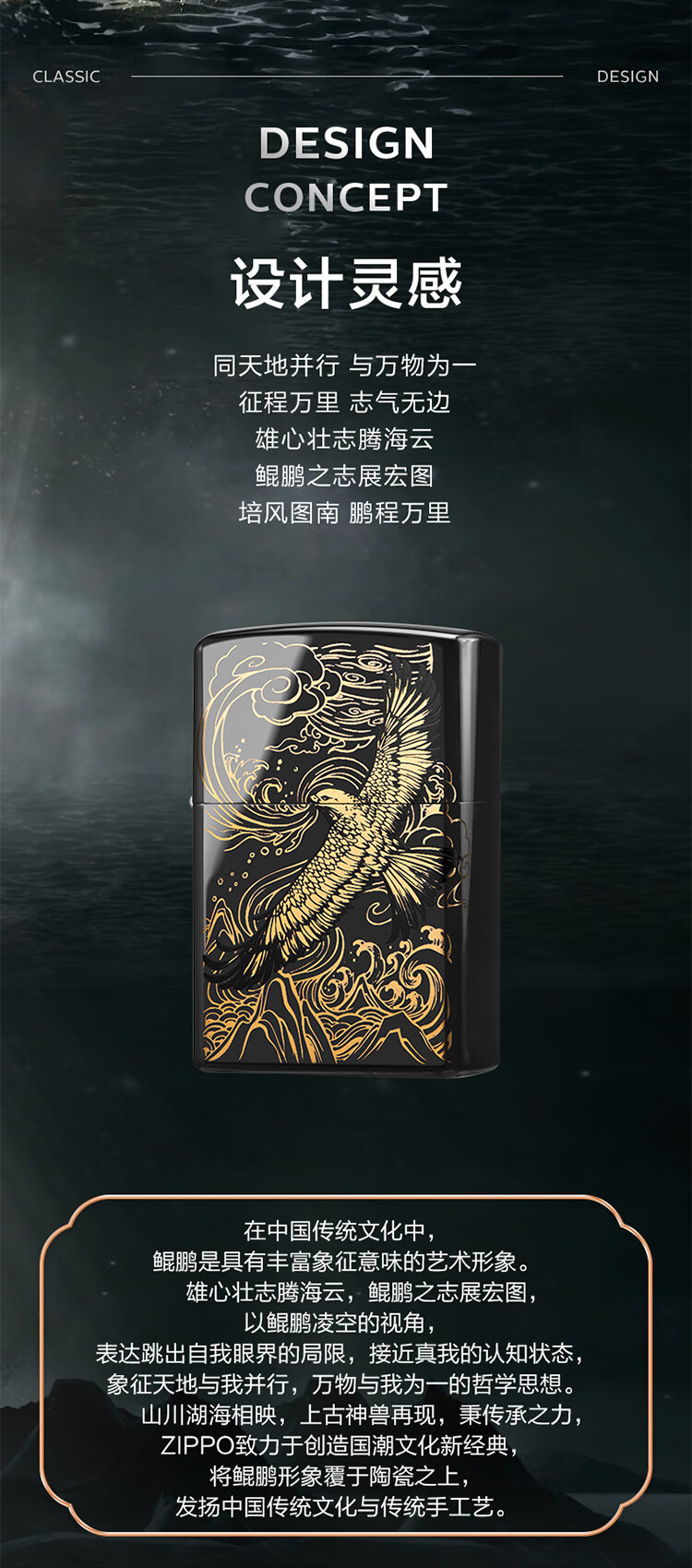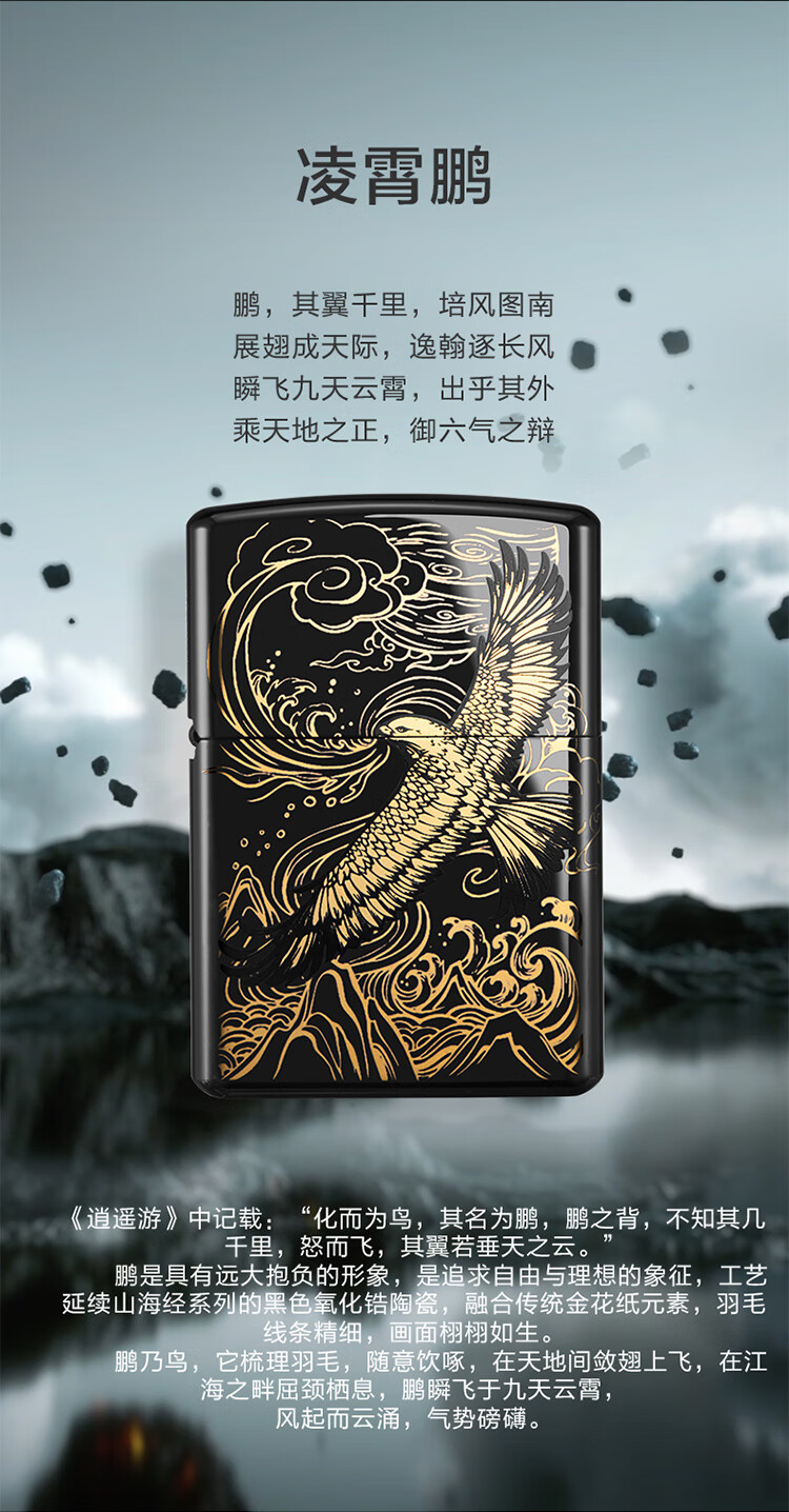 ZIPPO打火机之宝防风煤油 山海玄冥-凌霄鹏 生日礼物送男友 单机礼盒