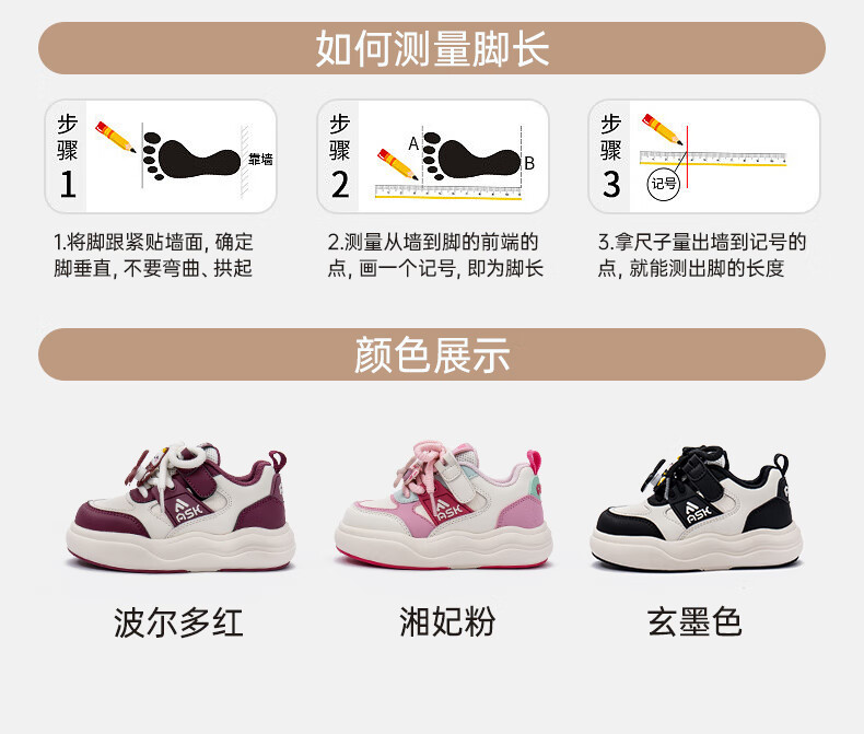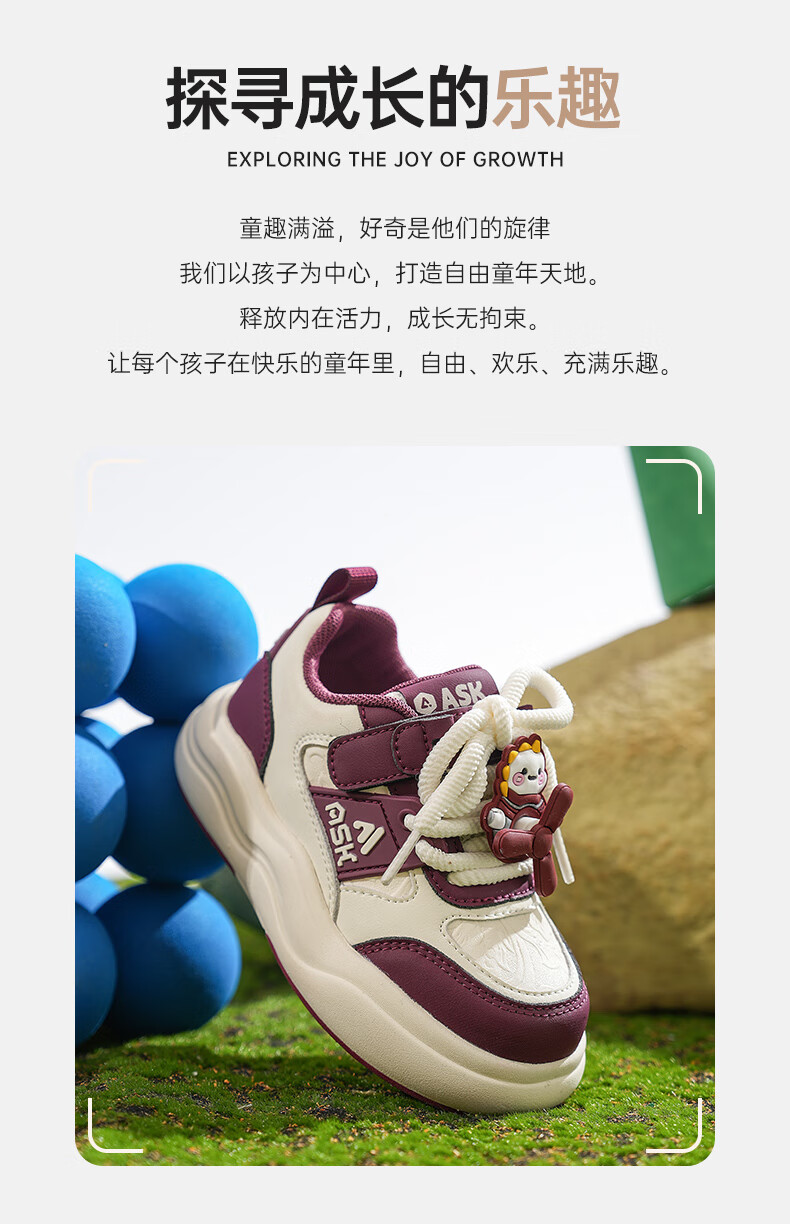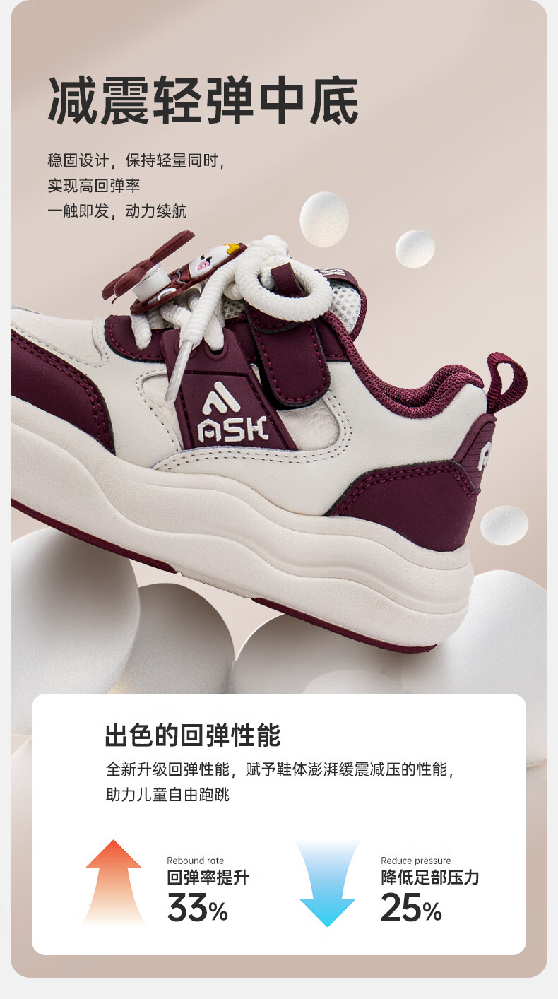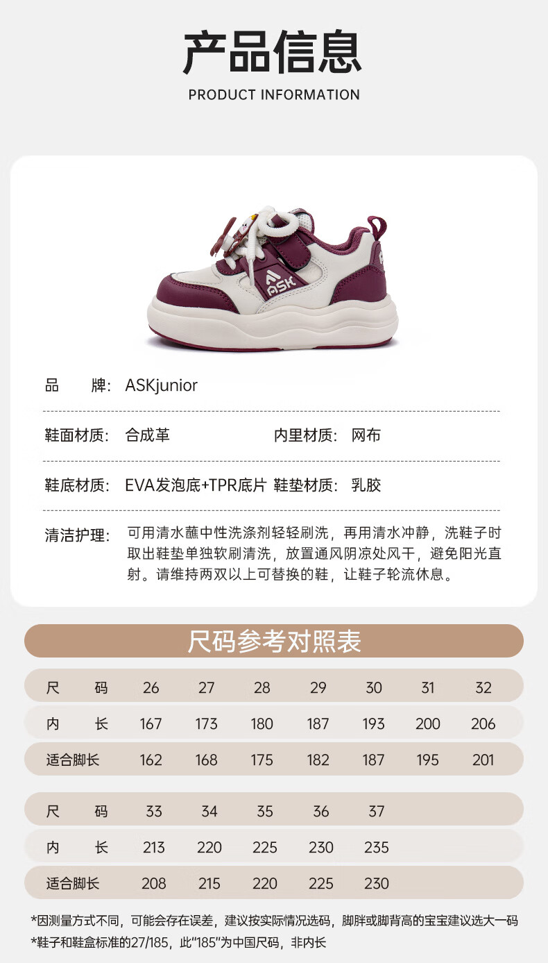 ASK JUNIOR儿童运动鞋2025新款秋冬季板鞋男女童鞋子中大童 波尔多红 32