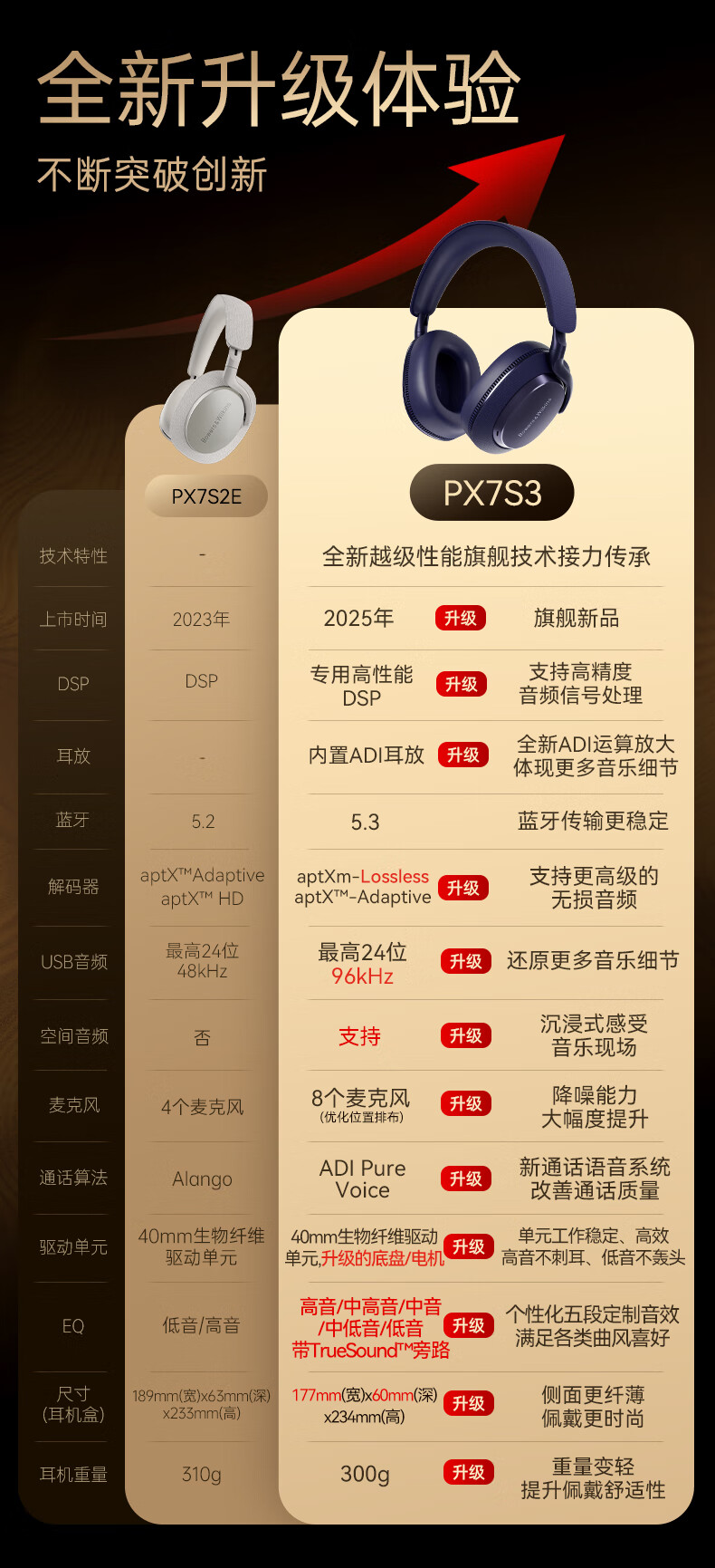 宝华韦健Px7S3新旗舰2025头戴式蓝牙耳机 HiFi音质主动降噪无线耳机 非Px7S2e升级中秋国庆礼品 紫霞蓝