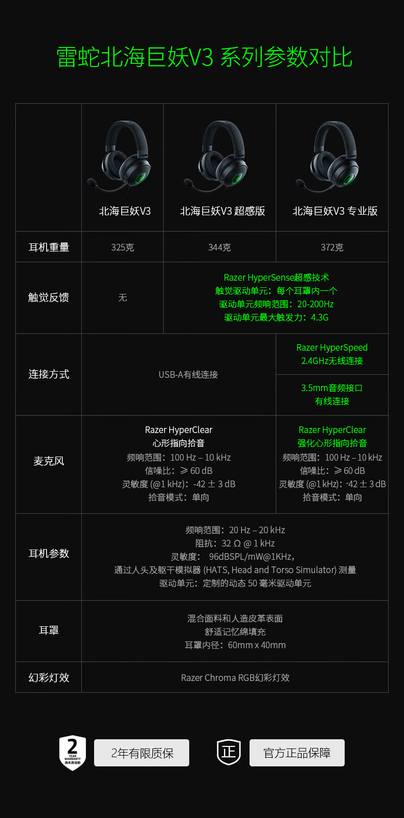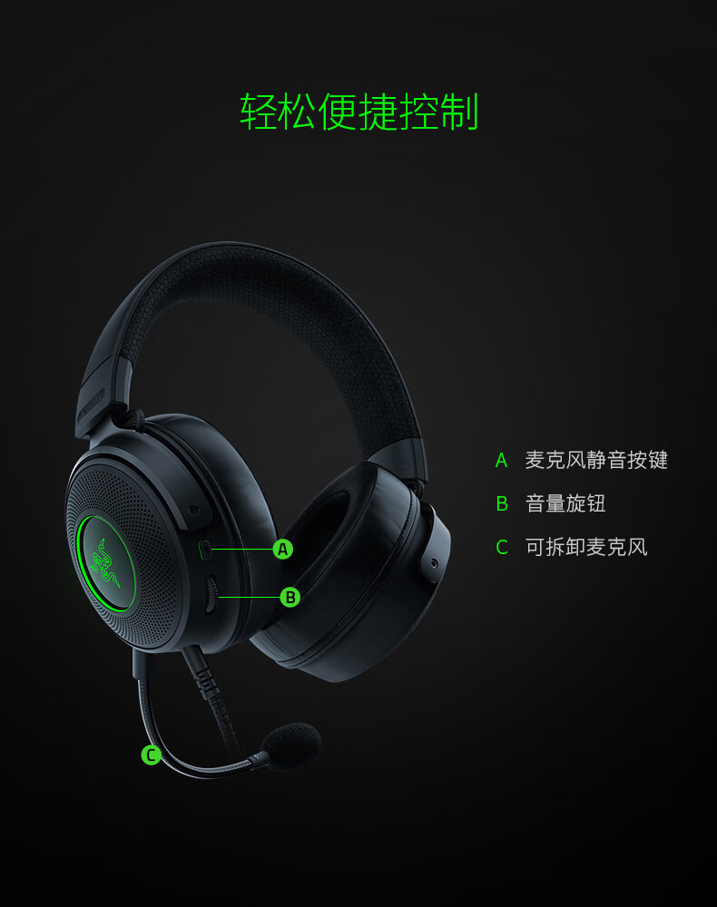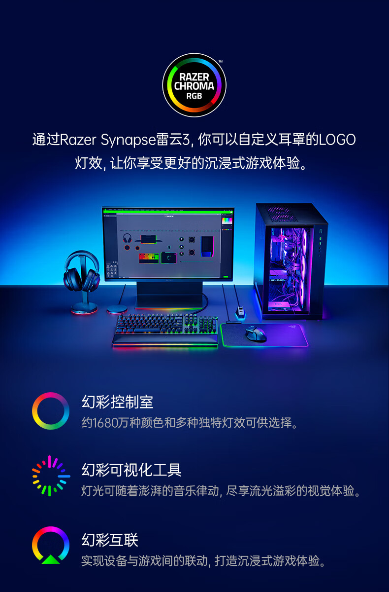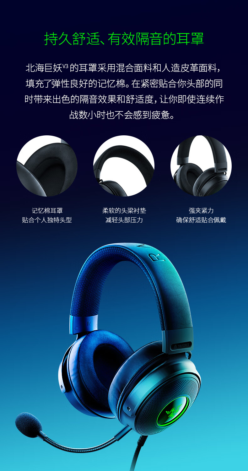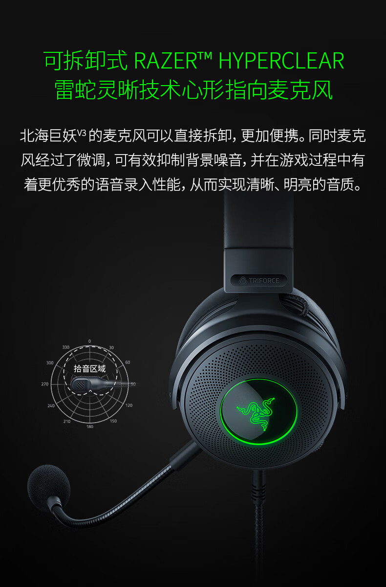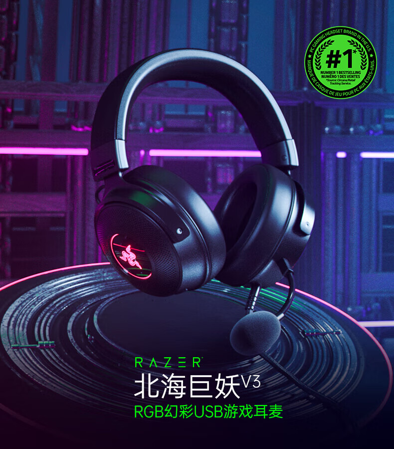 雷蛇(Razer)北海巨妖V3 有线头戴式电竞游戏耳机耳麦 RGB灯效 CSGO 黑神话悟空 吃鸡耳机 适配三角洲行动